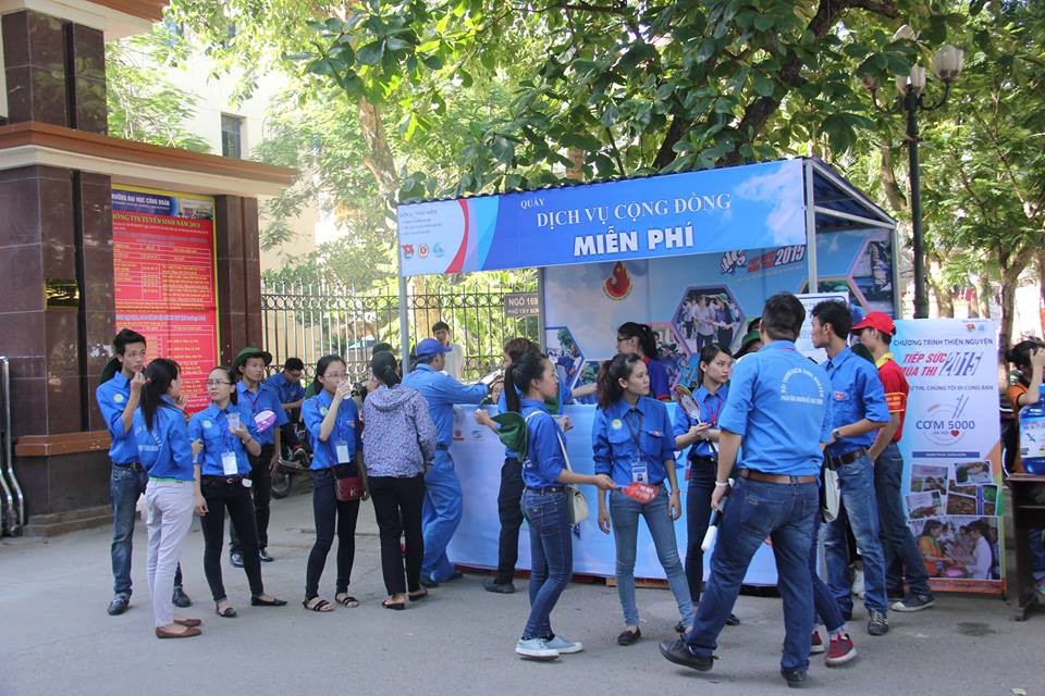 Tại các địa điểm thi của cụm trường Đại học Thủy Lợi các bạn sinh viên hướng dẫn rất tận tình cho các thí sinh và người nhà thí sinh