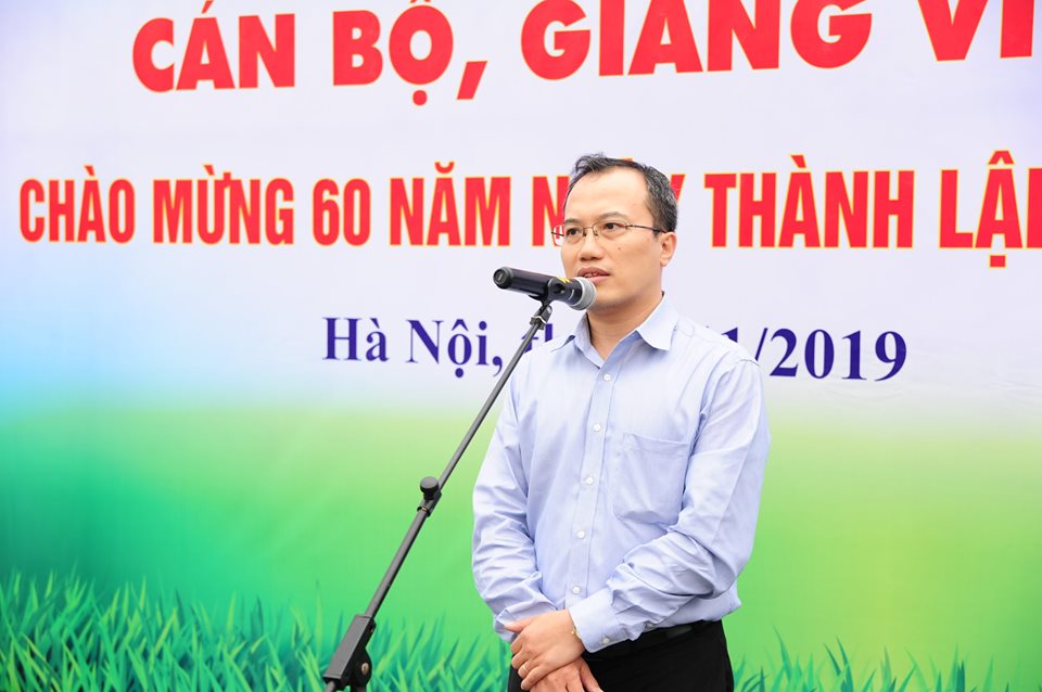 Đồng chí Nguyễn Ngọc Thắng, chủ tịch Công đoàn trường phát biểu trong lễ khai mạc "Giải đấu năm nay diễn ra trong không khí đặc biệt, giải đấu chào mừng 60 năm thành lập trường"