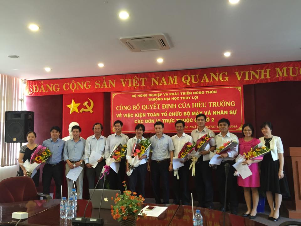 Sáng ngày 8/10/2015 Tại Cơ sở 2 – Đại học Thủy Lợi (số 2 Trường Sa – Phường 17 – Tp Hồ Chí Minh) Trường Đại học Thủy Lợi đã tổ chức buổi công bố quyết định của Hiệu trưởng Trường Đại học Thủy Lợi về việc kiện toàn tổ chức bộ máy và nhân sự các đơn vị thuộc Cơ sở 2.