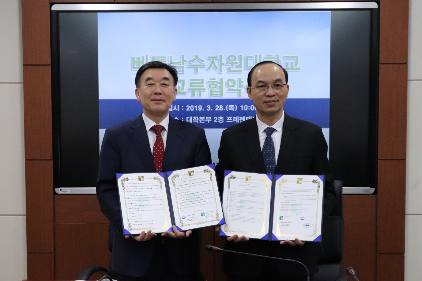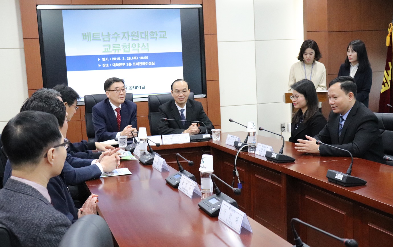Dựa trên sự thỏa thuận nhất trí cao, Trường ĐH Thủy lợi và Trường KHCN Chosun đã ký kết Biên bản ghi nhớ MOU đánh dấu sự thiết lập mối quan hệ hợp tác chính thức giữa hai trường. Sắp tới, hai bên sẽ tiếp tục liên hệ chặt chẽ để lập kế hoạch cụ thể nhằm thúc đẩy triển khai chương trình thực tập sinh trong thời gian sớm nhất.