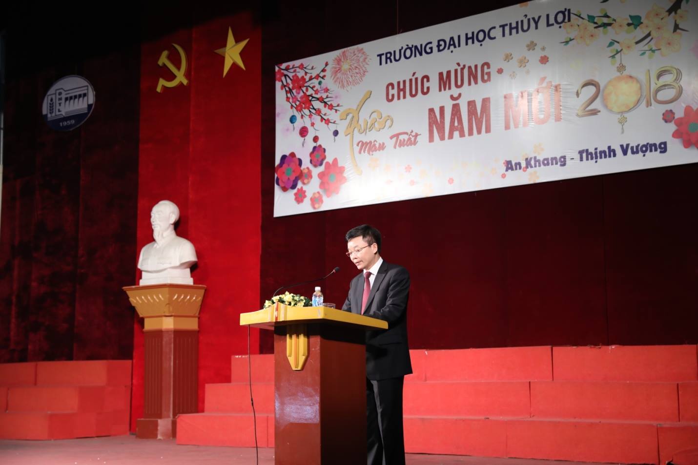 Sáng ngày 26/02 (tức ngày 11 tháng giêng), tại Hội trường T45, lãnh đạo Nhà trường đã có buổi gặp mặt chúc Tết CBVC đầu Xuân Mậu Tuất 2018. Tham dự có toàn thể Đảng ủy, Ban Giám hiệu, Hội đồng trường, Công đoàn, Đoàn thanh niên, các Phòng, Khoa, Ban, các cán bộ, giảng viên và sinh viên Trường Đại học Thủy lợi.