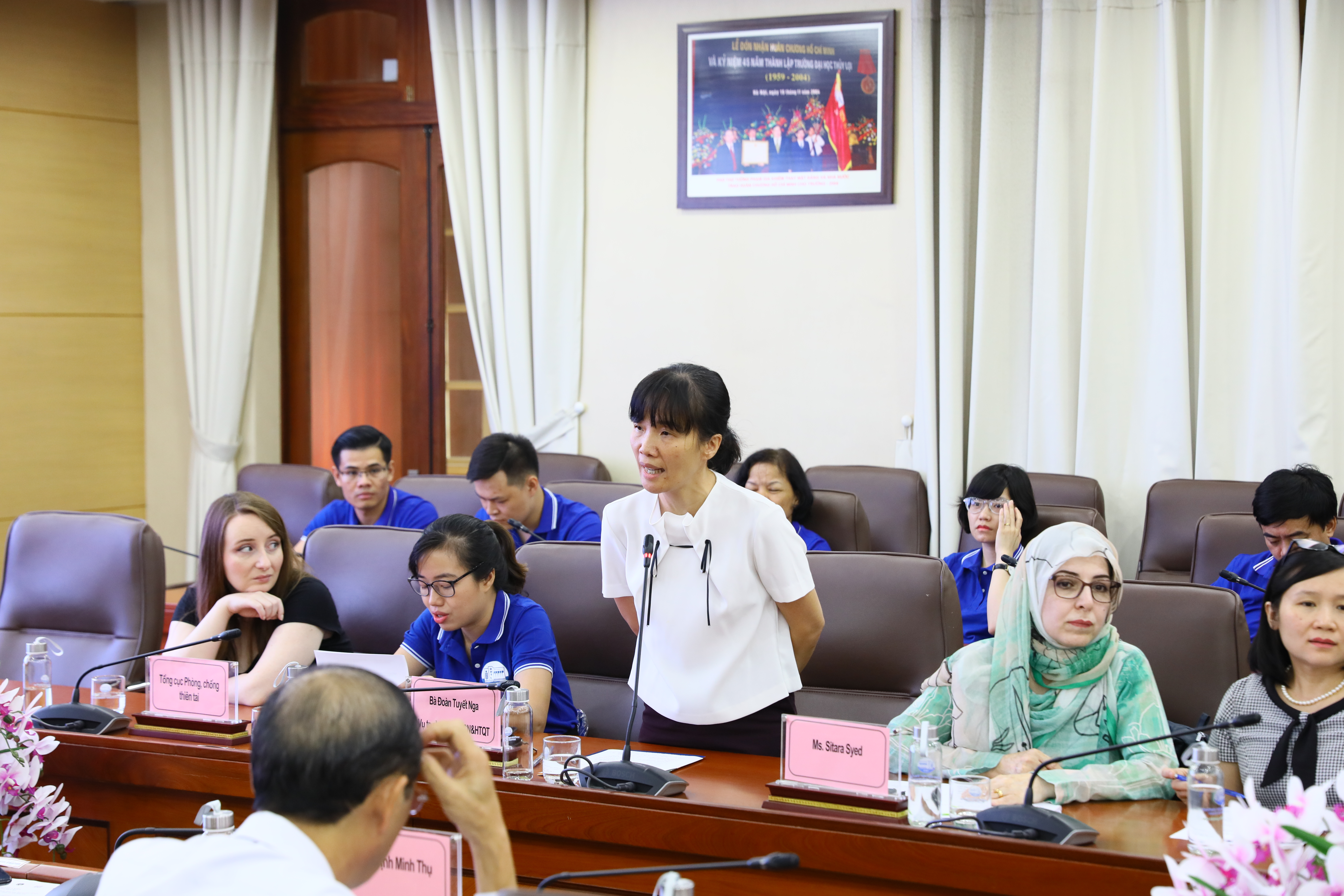 Đại diện đơn vị tài trợ, Bà Sitara Syed – Phó Trưởng Đại diện UNDP tại Việt Nam cũng khẳng định: Các học viên từ khóa học này đã, đang và sẽ là nguồn lực quan trọng trong nỗ lực chung giúp người dân và cộng đồng Việt Nam an toàn hơn, ứng phó tốt hơn trước thiên tai và tác động của biến đổi khí hậu. Bà Sitara Syed bày tỏ mong muốn được tiếp tục đồng hành cùng Trường Đại học Thủy lợi, Tổng cục Phòng chống thiên tai trong việc tổ chức khóa học thứ 2 trong thời gian sắp tới.