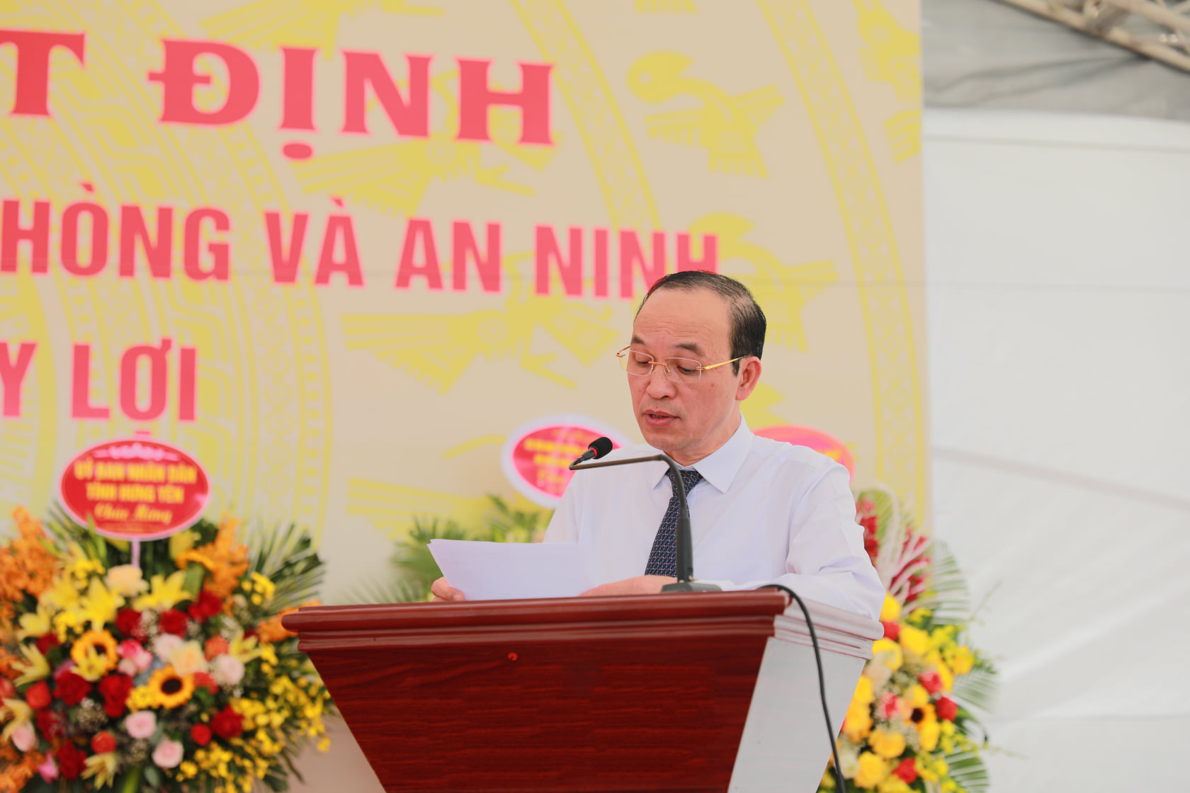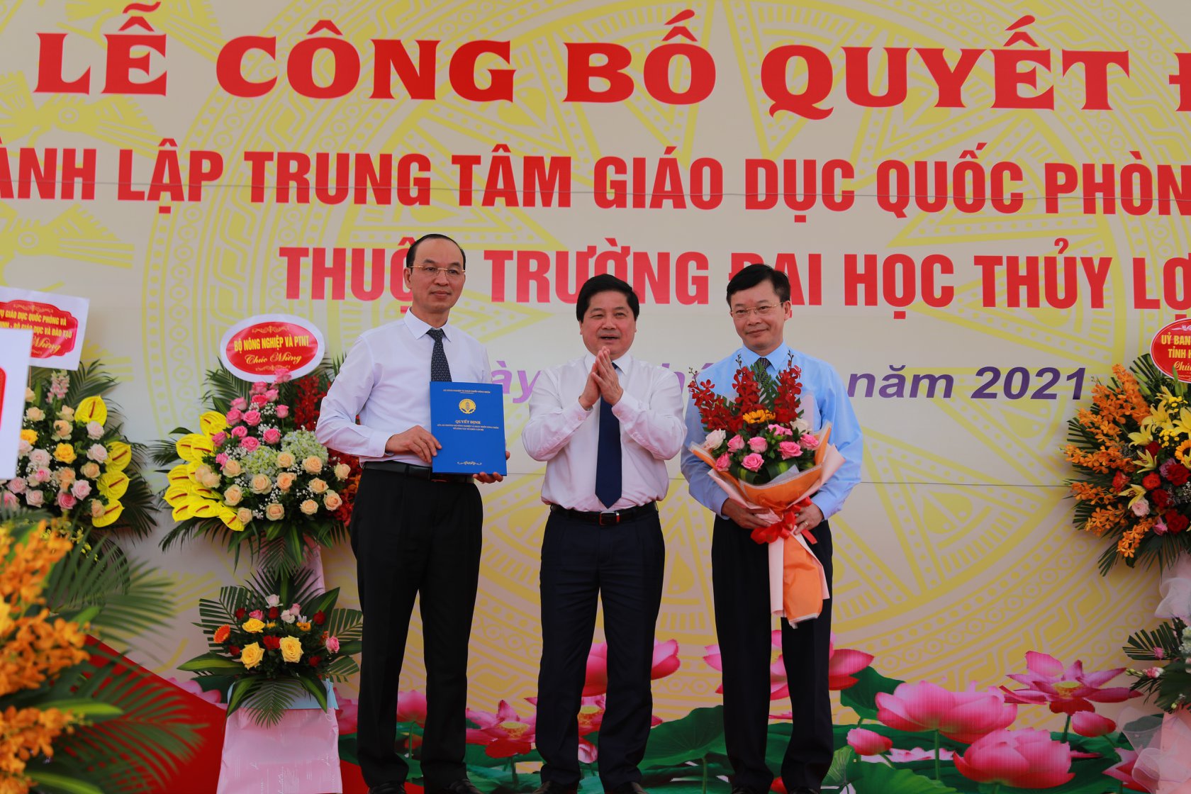 Tại buổi lễ, ông Nguyễn Thành Lệ – Phó Vụ trưởng Vụ Tổ chức cán bộ, Bộ Nông nghiệp và PTNT đã công bố Quyết định của Bộ trưởng thành lập Trung tâm GDQP&AN thuộc Trường Đại học Thủy lợi.