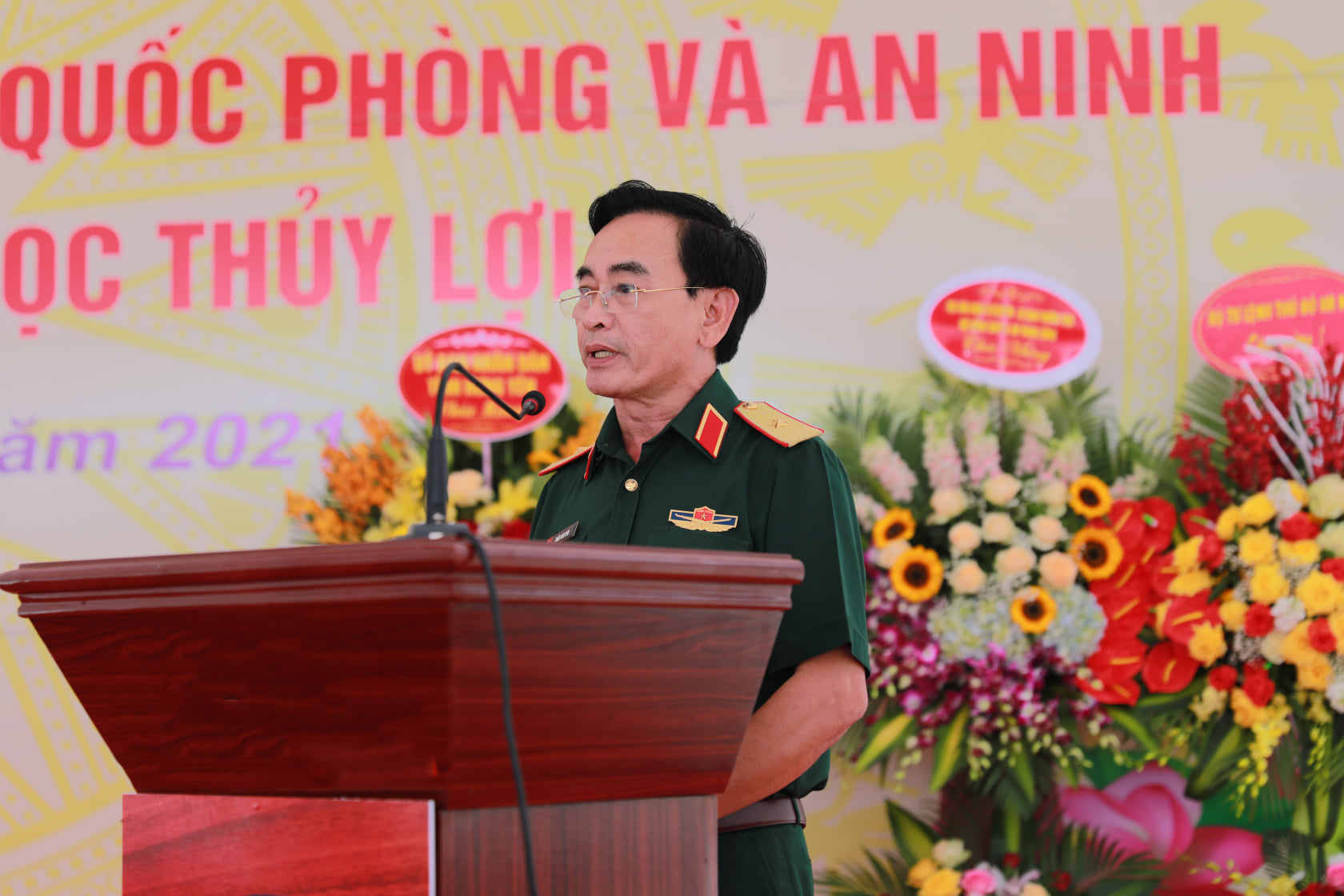 Đến dự cùng với buổi Lễ, Thiếu tướng Trần Văn Sơn – Phó Cục trưởng Cục Dân quân tự vệ, Bộ Tổng tham mưu, Bộ Quốc phòng phát biểu “Đây là Trung tâm GDQP&AN quốc gia. Trong cả nước hiện nay có tổng số 38 Trung tâm GDQP&AN quốc gia. Thay mặt Hội đồng Giáo dục quốc phòng an ninh Trung ương, tôi xin được chúc mừng Nhà trường. Chúng tôi rất mong lãnh đạo Bộ Nông nghiệp & PTNT, các Bộ, Ngành, Hội đồng GDQP&AN Quân khu 3, thành phố Hà Nội, tỉnh Hưng Yên tiếp tục quan tâm, lãnh đạo, chỉ đạo, hướng dẫn mọi thủ tục, tạo mọi điều kiện thuật lợi nhất để Trung tâm GDQP&AN Trường Đại học Thủy lợi hoàn thành xuất sắc nhiệm vụ được giao”.