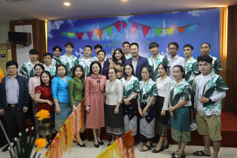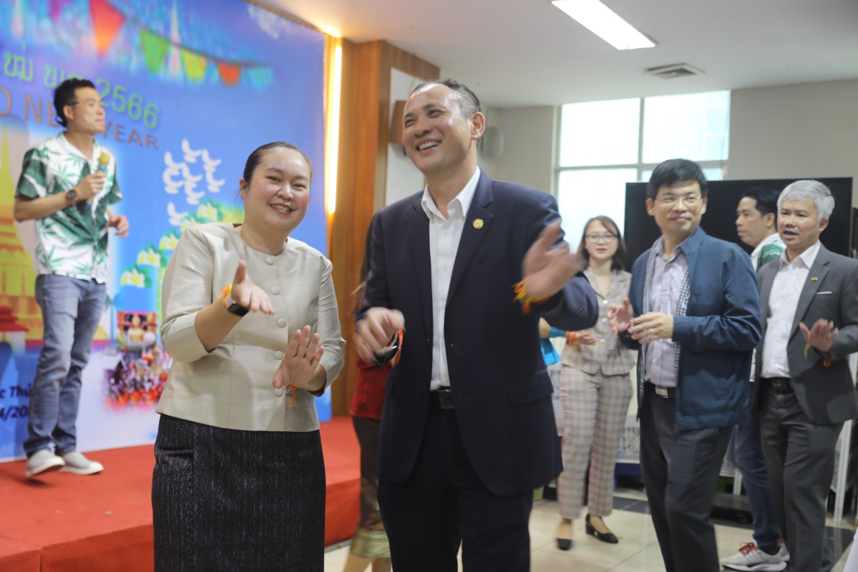 Thầy Phó hiệu trưởng và Bà Phonevilay SYPASEUTH – Bí thư thứ Hai Đại sứ quán Lào tại Việt Nam cũng rất hào hứng với điệu nhảy Lăm vông cùng với các bạn Lưu học sinh nước bạn Lào anh em.