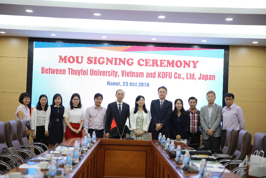 Từ khoảng đầu năm 2018, được sự giới thiệu từ Tổ chức JETRO, Công ty TNHH KOFU Nhật Bản đã nhiều lần tìm hiểu, làm việc và thảo luận với Trường ĐHTL về các điểm mạnh của hai bên, từ đó nhận thấy hai bên có thể hợp tác được trong các lĩnh vực như: Cải tạo đất canh tác và các sản phẩm phân sinh học công nghệ cao.