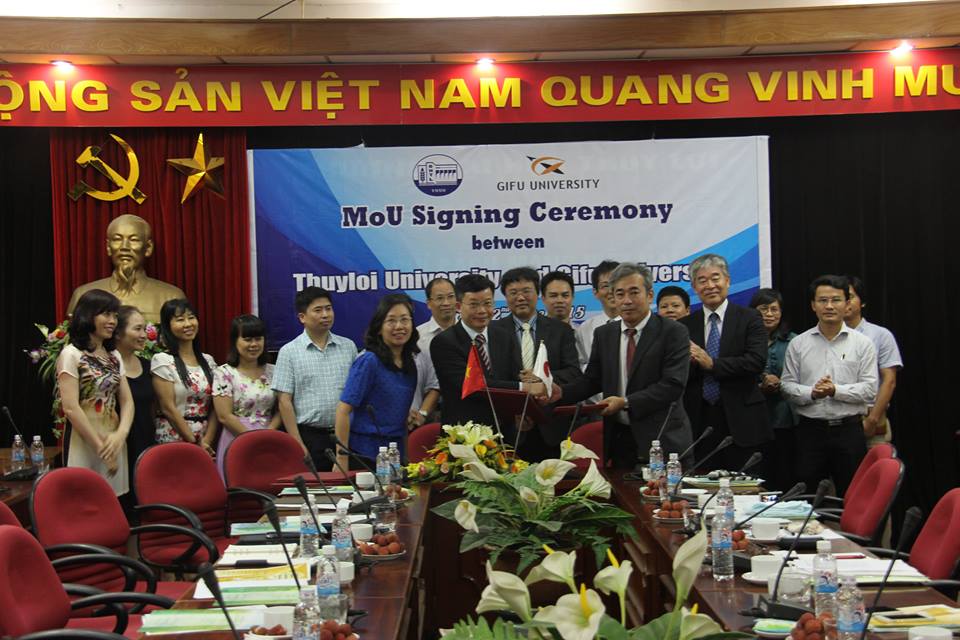 Sau một thời gian chuẩn bị các thủ tục, ngày 22/6/2015, tại hội trường 223 nhà A1 đã diễn ra Lễ ký kết Biên bản ghi nhớ giữa trường Đại học Gifu Nhật Bản và trường Đại học Thủy lợi. Tham dự về phía Nhật Bản có GS. Masateru Senge – Trưởng khoa sau đại học về Nông Nghiệp, GS. Kohei Nakano – Phó Trưởng khoa sau đại học về Nông Nghiệp, ĐH Gifu Ông Ejjiii Chihara, Công ty Sanyu. Về phía Nhà trường có GS.TS Nguyễn Quang Kim – Bí thư Đảng Ủy, Hiệu trưởng Nhà trường, PGS. TS. Nguyễn Cảnh Thái – Phó Hiệu trưởng Nhà trường cùng đại diện các phòng khoa ban trong trường.