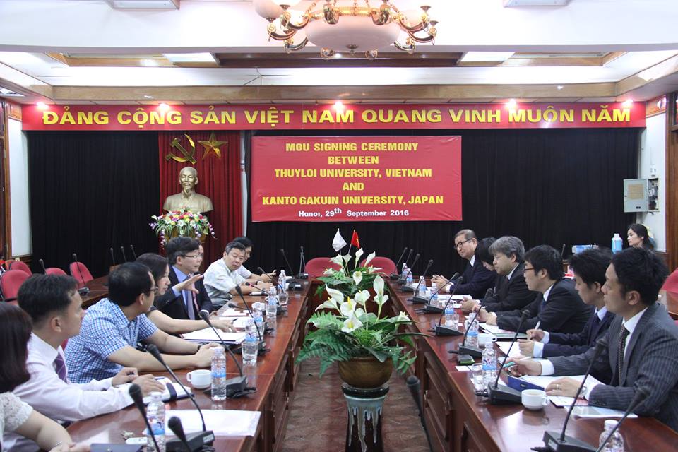 Ngày 29/09/2016 tại phòng họp 223/A1, Trường Đại học Thủy lợi diễn ra Lễ ký kết thỏa thuận hợp tác về nghiên cứu khoa học và đào tạo giữa Nhà trường và Trường Đại học Kanto Gakuin Nhật Bản (KGU).
