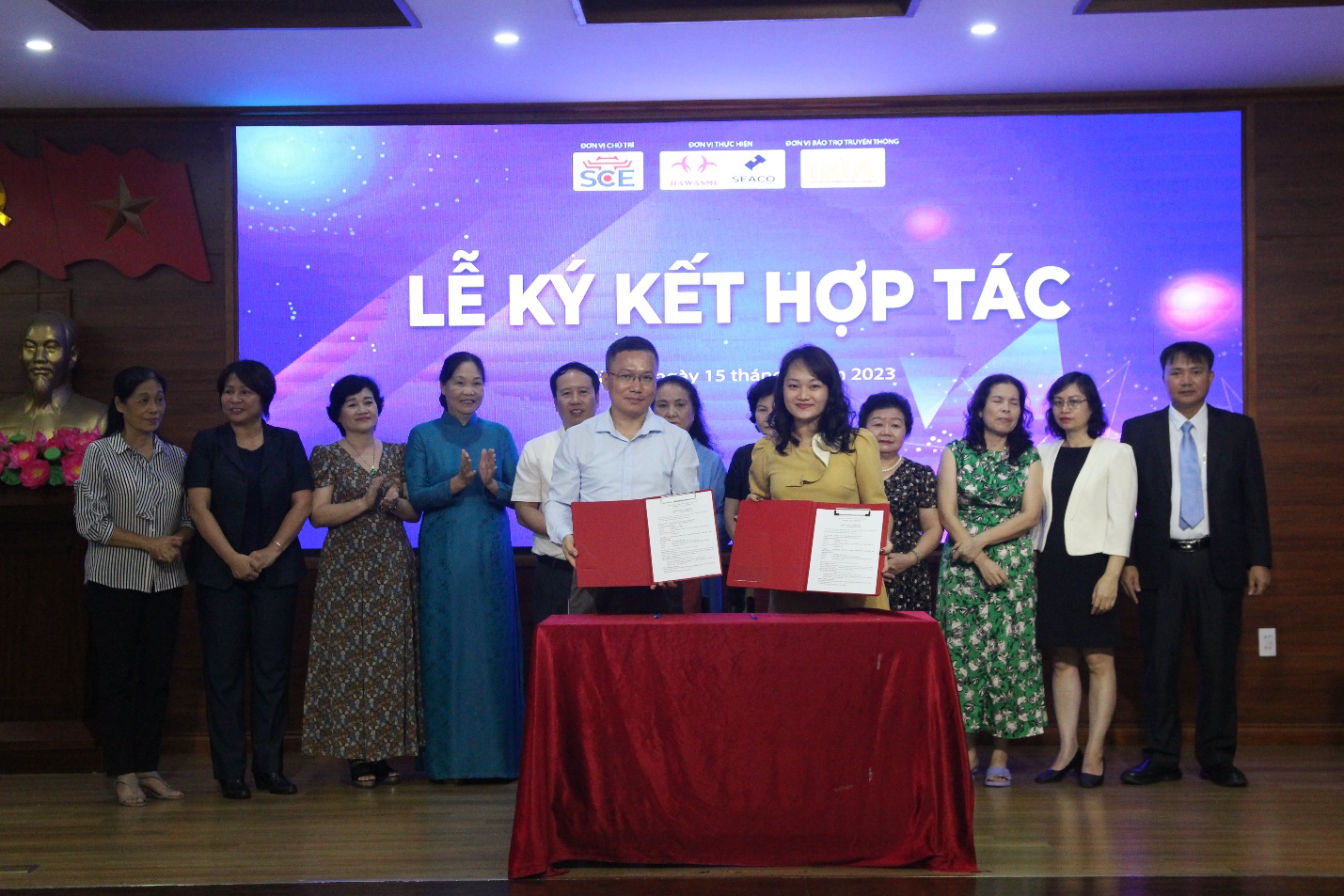 PGS. TS Đỗ Văn Quang – Trưởng Khoa Kinh tế và Quản lý ký kết hợp tác cùng Bà Mai Thị Thùy – Chủ tịch Hiệp hội HAWASME