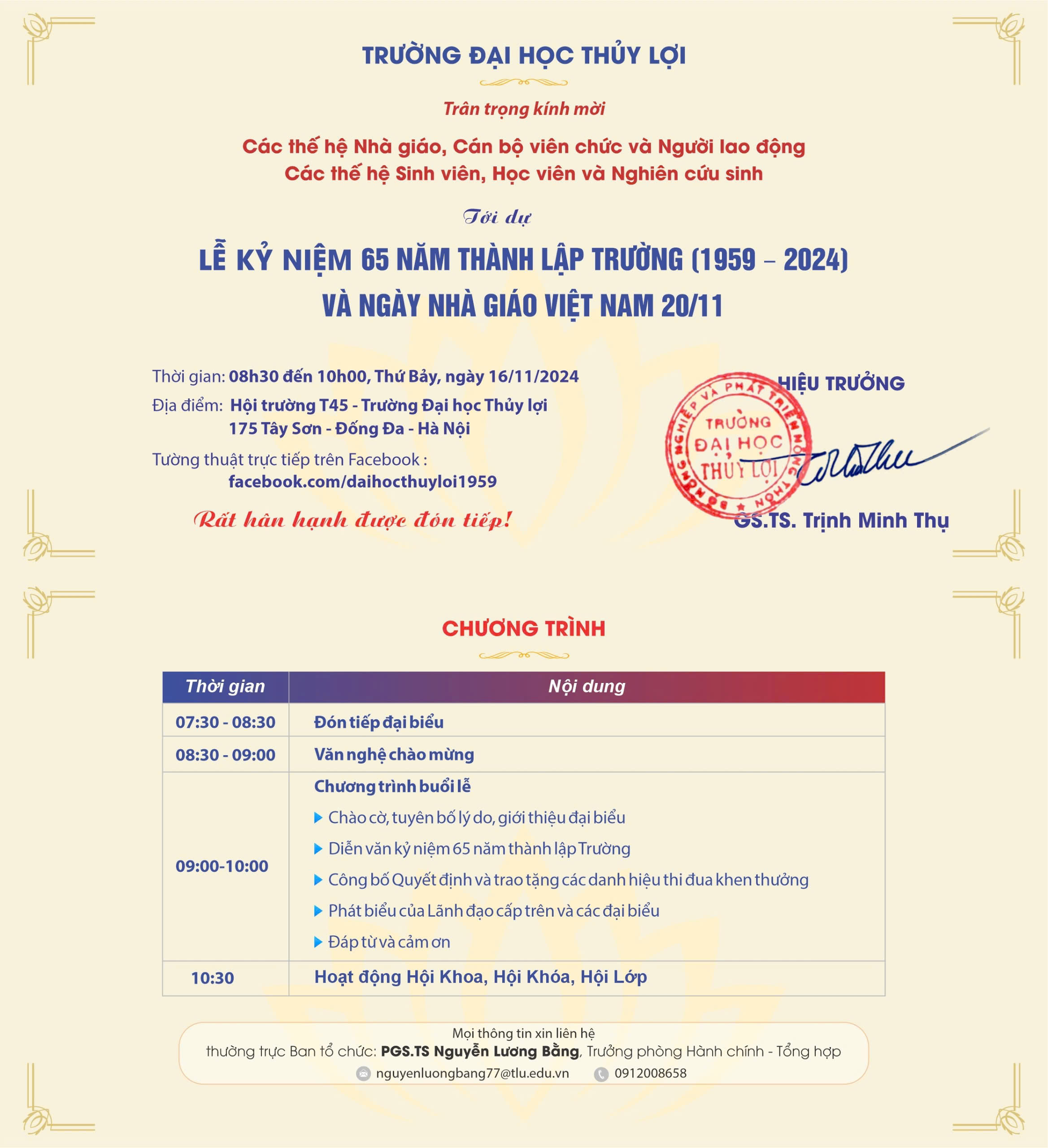 Lễ kỷ niệm 65 năm thành lập Trường Đại học Thủy lợi và ngày nhà giáo việt nam 20/11