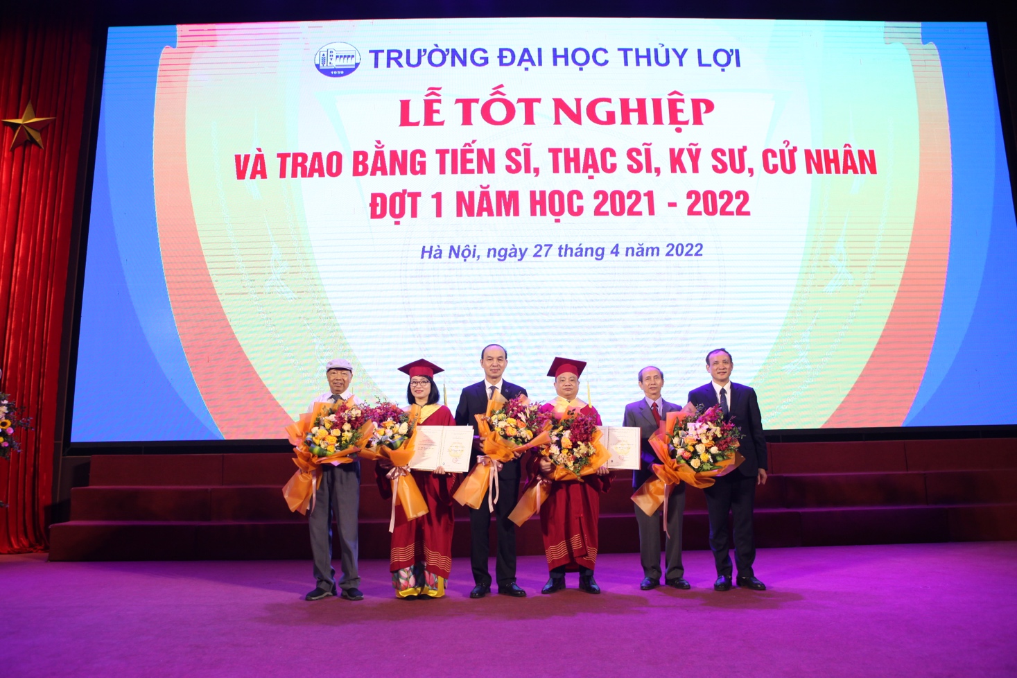 Buổi lễ đã lắng nghe báo cáo kết quả đào tạo đại học và sau đại học của Trường Đại học Thủy lợi. Theo đó, Nhà trường đang đào tạo và tuyển sinh 38 ngành trình độ đại học với tổng số sinh viên đang theo học là gần 17.000. Tổng số sinh viên được công nhận tốt nghiệp và trao bằng đợt này là gần 1.000 sinh viên, trong đó có 03 sinh viên xuất sắc, 24 sinh viên giỏi và 73 sinh viên tiên tiến. Điển hình có những sinh viên có kết quả học tập loại xuất sắc như các sinh viên: Nguyễn Thủy Tiên lớp 59NKN, chương trình tiên tiến ngành Kỹ thuật tài nguyên nước (Điểm trung bình: 3.86/4.0) thủ khoa của Trường đợt này; sinh viên Nguyễn Thị Phương lớp 59MT1, ngành Kỹ thuật môi trường (3.71/4), sinh viên Đinh Ngọc Hùng lớp 59GT, ngành Kỹ thuật xây dựng công trình giao thông (3.62/4)… và nhiều sinh viên học vượt và nhận bằng tốt nghiệp văn bằng 2.