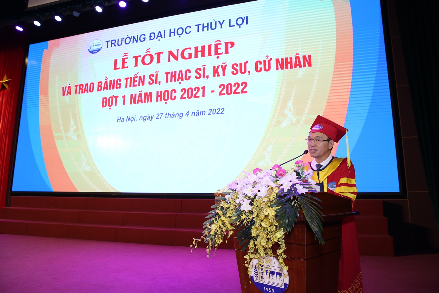Một lần nữa, xin chúc mừng các tân Tiến sĩ, Thạc sĩ, Kỹ sư và Cử nhân. Hy vọng rằng, sau khi chia tay mái Trường Đại học Thủy lợi thân yêu, trên vị trí công tác của mình, các anh, chị và các em sinh viên sẽ vận dụng và phát huy tốt những kiến thức, kỹ năng, phẩm chất đã được trang bị, rèn luyện trong Nhà trường để giải quyết hiệu quả các công việc của thực tiễn, góp phần xây dựng ngành và phát triển đất nước.