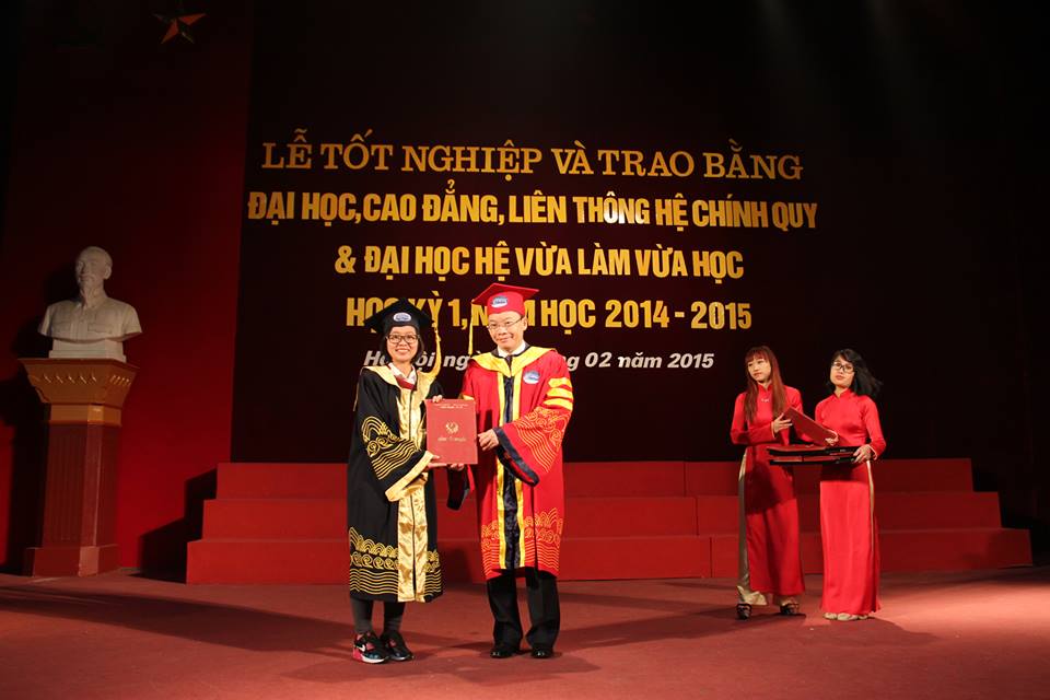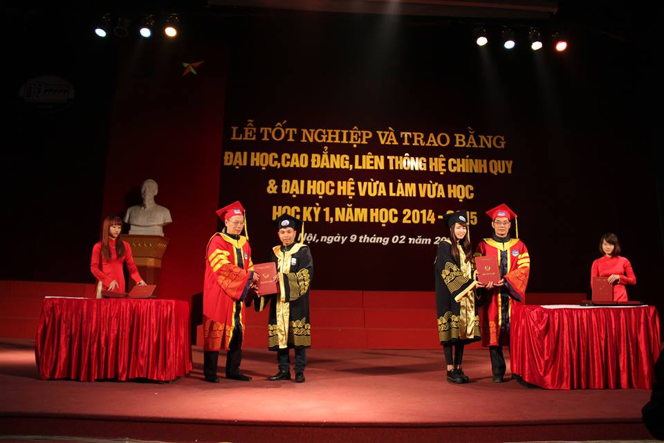 Tham gia trong buổi lễ có GS.TS Nguyễn Quang Kim – Hiệu trưởng Nhà trường, GS.TS Trịnh Minh Thụ – Phó hiệu trưởng nhà trường, đại diện Đảng ủy, công đoàn, đoàn TN, hội sinh viên, các phòng, khoa, ban, các thầy cô giáo, các bậc phụ huynh và các sinh viên tốt nghiệp trong học kì 1 năm học 2014 – 2015.