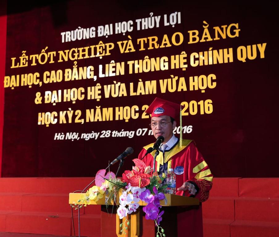 Phát biểu tại buổi lễ, thay mặt cho lãnh đạo Nhà trường, GS.TS.Trịnh Minh Thụ gửi lời chúc mừng và ghi nhận những nỗ lực hết mình của các tân kỹ sư, tân cử nhân, biểu dương những thành tích mà các bạn đã đạt được trong toàn khóa học. Đồng thời giáo sư cũng gửi gắm hy vọng, mong các em với vai trò mới là những tân kỹ sư, tân cử nhân sau khi ra trường sẽ có được những công việc ổn định, mang những kiến thức mà thầy cô đã truyền đạt, phát huy tốt truyền thống sinh viên Nhà trường, góp công sức, trí tuệ vào sự nghiệp chung xây dựng đất nước, quê hương ngày càng giàu đẹp.