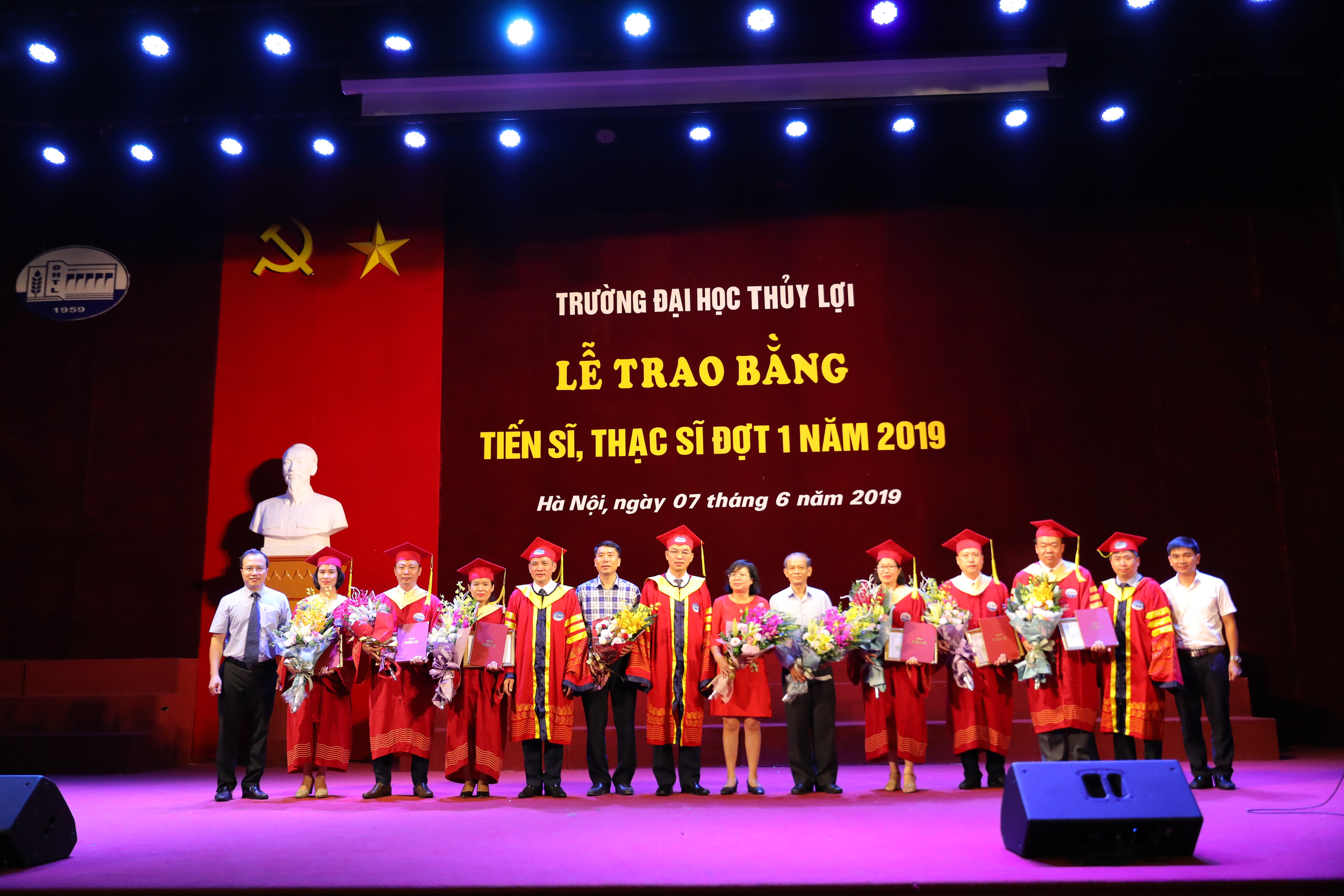 Sáng ngày 7/6, tại hội trường T45, Trường Đại học Thủy lợi long trọng tổ chức lễ trao bằng tiến sĩ, thạc sĩ đợt 1 năm 2019 với sự tham dự của GS.TS Nguyễn Văn Tỉnh – Tổng cục trưởng Tổng cục Thủy lợi – Bộ NN&PTNT. Về phía Trường Đại học Thủy lợi có GS.TS Trịnh Minh Thụ – Hiệu trưởng; GS.TS Nguyễn Trung Việt – Phó hiệu trưởng; cùng đại diện Đảng ủy, Ban giám hiệu, Công đoàn, lãnh đạo các phòng khoa ban; các cán bộ, giảng viên trực tiếp tham gia giảng dạy, hướng dẫn luận án, luận văn tốt nghiệp; các nghiên cứu sinh và học viên cao học đang học tập tại trường.