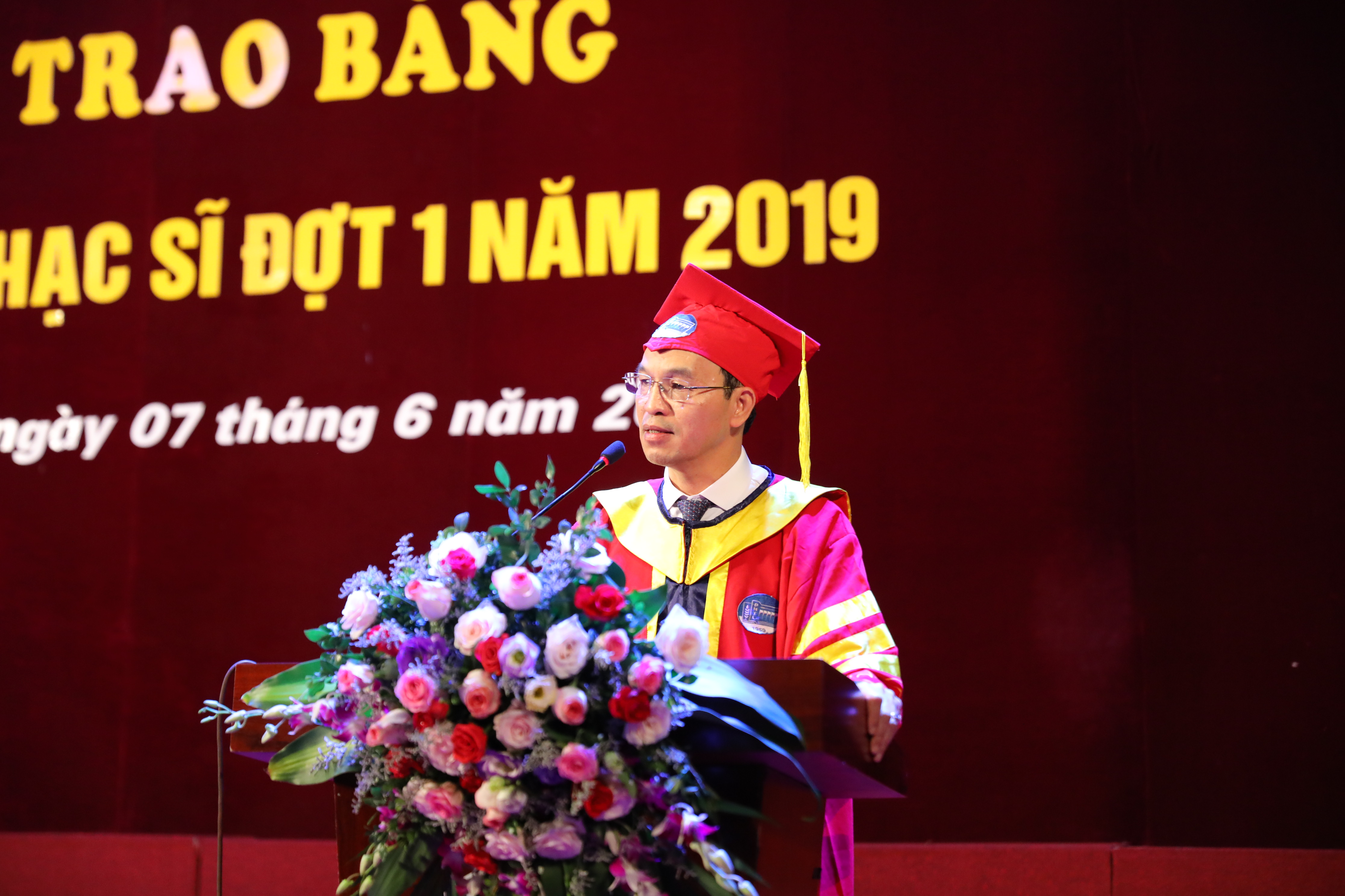 Phát biểu tại buổi lễ, GS.TS Trịnh Minh Thụ – Hiệu trưởng Nhà trường chúc mừng đến các tân tiến sĩ, tân thạc sĩ được cấp bằng đợt 1 năm 2019. Giáo sư khẳng định công tác đào tạo của trường luôn gắn liền với việc nâng cao chất lượng, đáp ứng nhu cầu xã hội. Nhà trường sẽ tạo mọi điều kiện thuận lợi để các học viên yên tâm học tập và công tác; xây dựng kế hoạch học tập mềm dẻo, linh hoạt đồng thời thường xuyên rà soát, cập nhật chương trình đào tạo, nội dung môn học nhằm cập nhật những kiến thức và tiến bộ khoa học mới vào chương trình đào tạo đáp ứng yêu cầu của người học.
