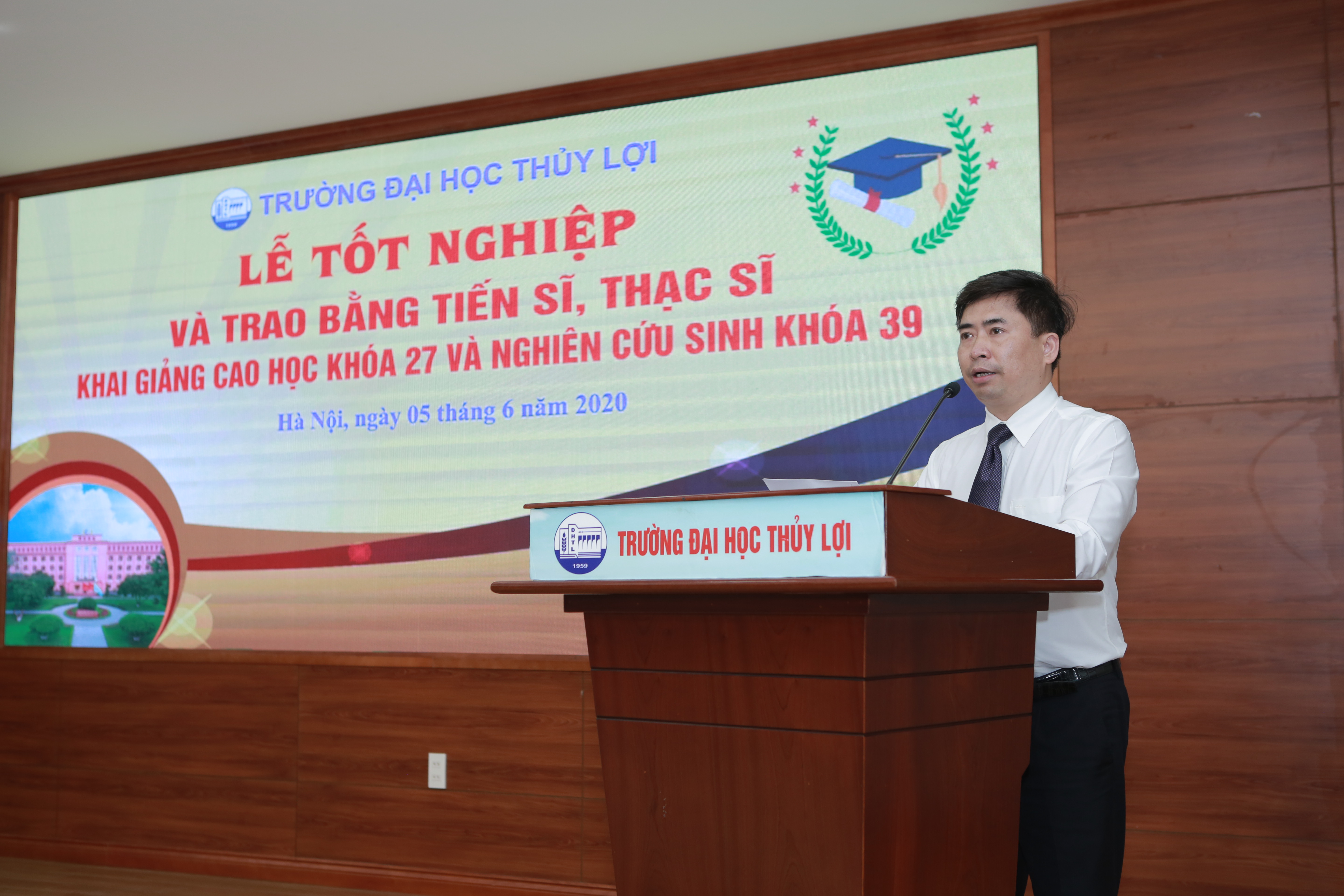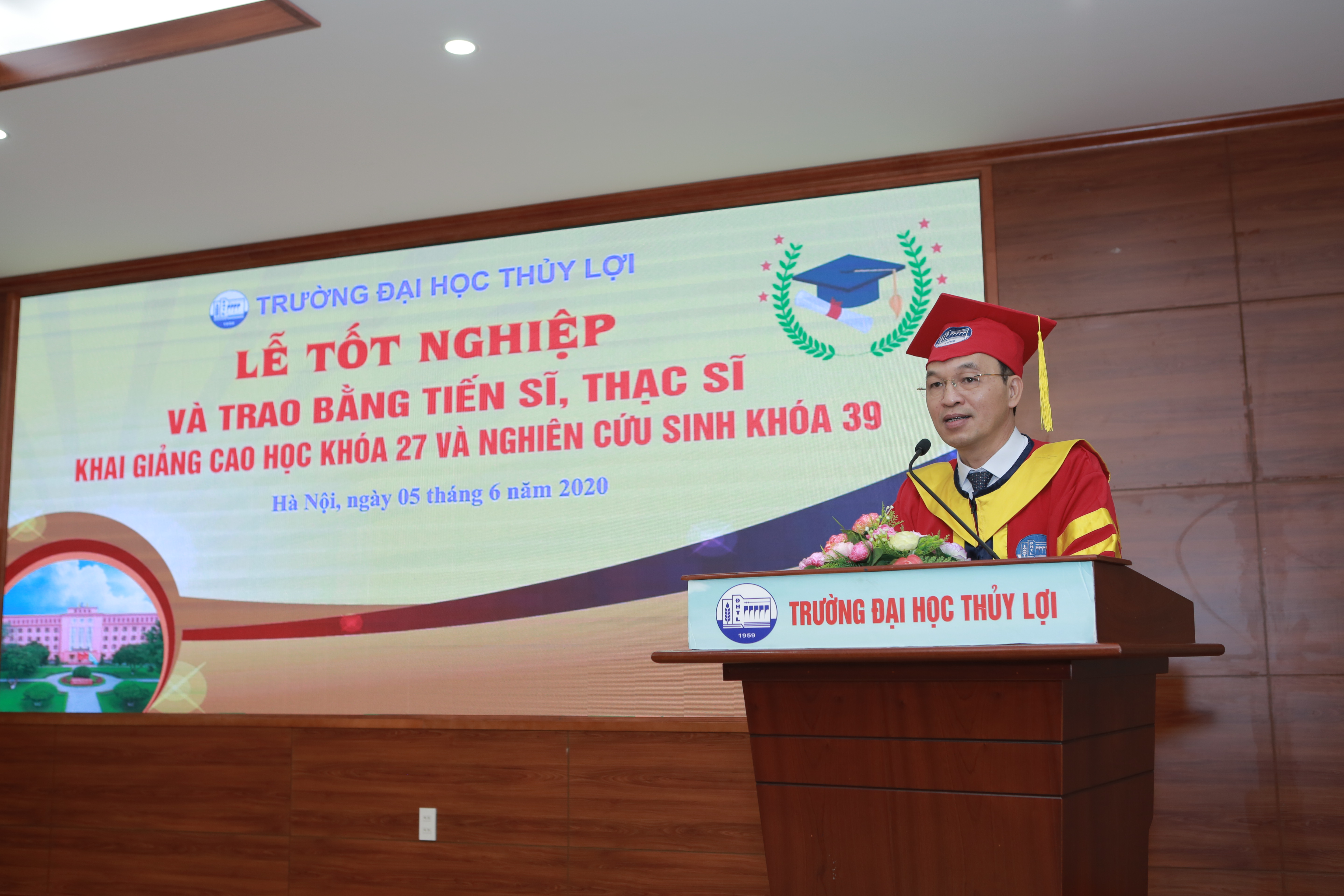 Sáng ngày 5/6, tại hội trường T35, Trường Đại học Thủy lợi long trọng tổ chức lễ trao bằng Tiến sĩ, Thạc sĩ và Khai giảng các lớp sau đại học đợt 1 năm 2020 với sự tham dự GS.TS Trịnh Minh Thụ – Hiệu trưởng; đại diện Đảng ủy, Ban giám hiệu, Công đoàn, lãnh đạo các phòng khoa ban; các cán bộ, giảng viên trực tiếp tham gia giảng dạy, hướng dẫn luận án, luận văn tốt nghiệp; các nghiên cứu sinh và học viên cao học đang học tập tại trường.