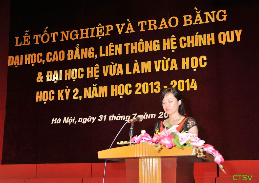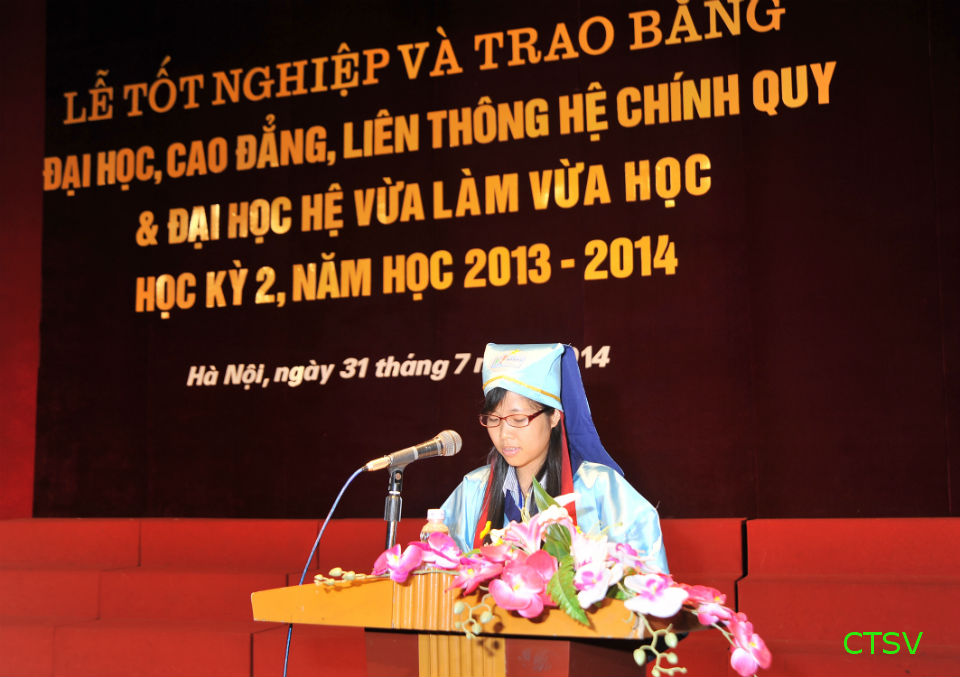 Phát biểu trong buổi lễ, sinh viên Đoàn Thị Đông lớp 52KT3 thay mặt cho hơn 800 sinh viên tốt nghiệp đã chia sẻ những cảm xúc rất chân thành về thầy cô, bạn bè về mái trường về những kỷ niệm không thể nào quên khi còn là sinh viên của ngôi trường Đại học Thủy Lợi thân yêu, dù có đi đến phương trời nào, ở đâu trên mọi miền của tổ quốc bạn và tất cả các sinh viên nhận bằng trong ngày hôm nay sẽ luôn tự hào là sinh viên của trường và sẽ cố gắng rèn luyện bản thân không ngừng học tập để luôn khẳng định tên tuổi của ngôi trường mà mình đã học.