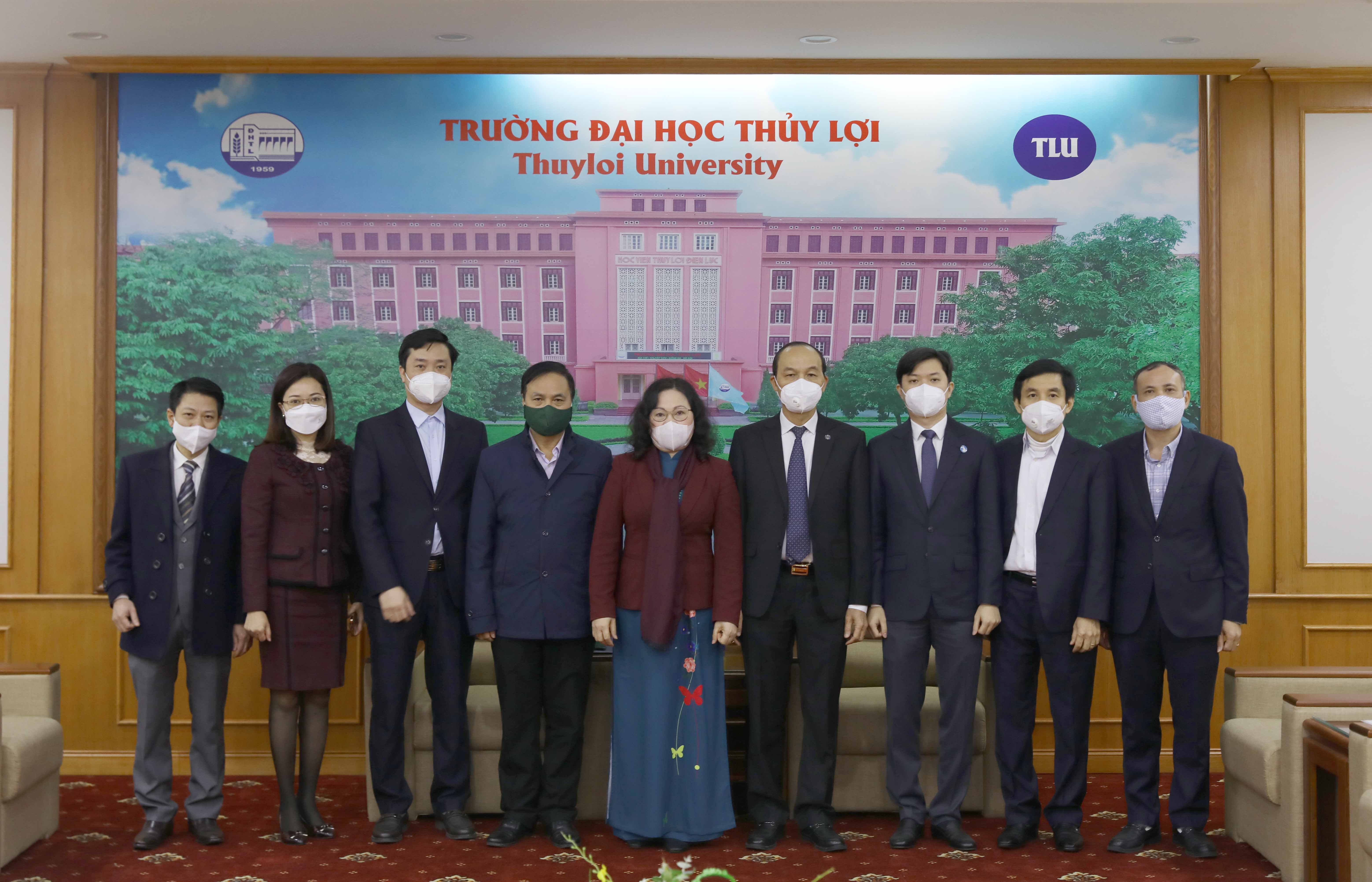GS.TS Trịnh Minh Thụ – Hiệu trưởng Trường Đại học Thủy lợi đón tiếp Thứ trưởng Bộ Giáo dục và Đào tạo – Bà Ngô Thị Minh và các thành viên của đoàn