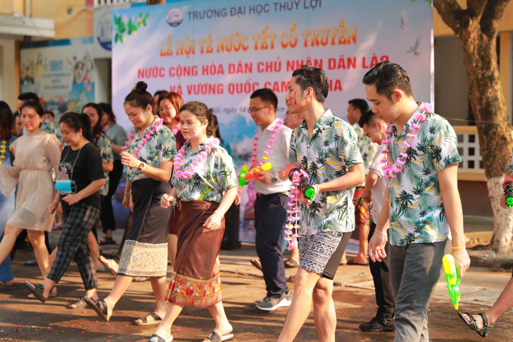 Lễ hội té nước tại Trường Đại học Thủy lợi đã tạo ra không khí vui tươi