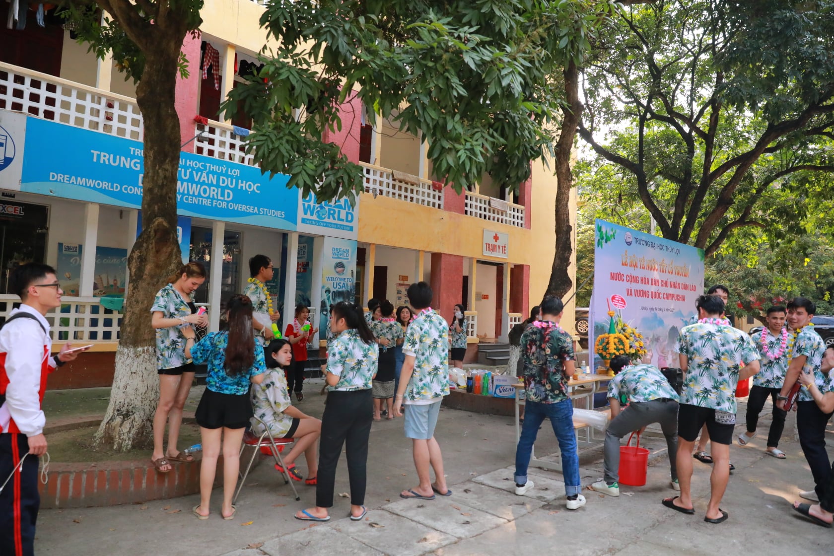 Chương trình Lễ hội té nước được khai mạc tại sân ký túc xá của sinh sinh viên nước ngoài.