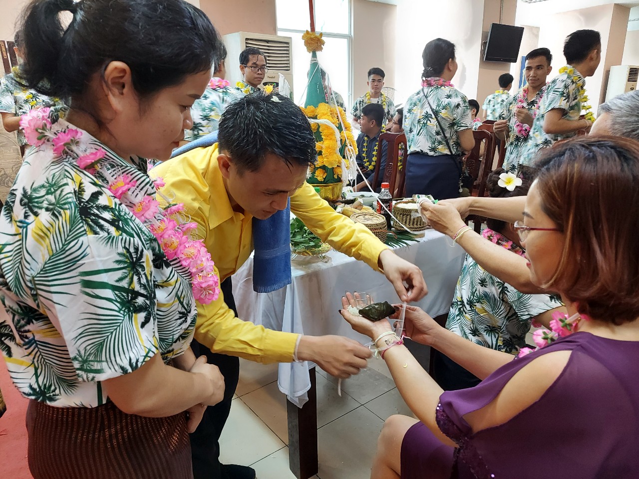 Nghi lễ buộc chỉ cổ tay được các Lưu học sinh thực hiện