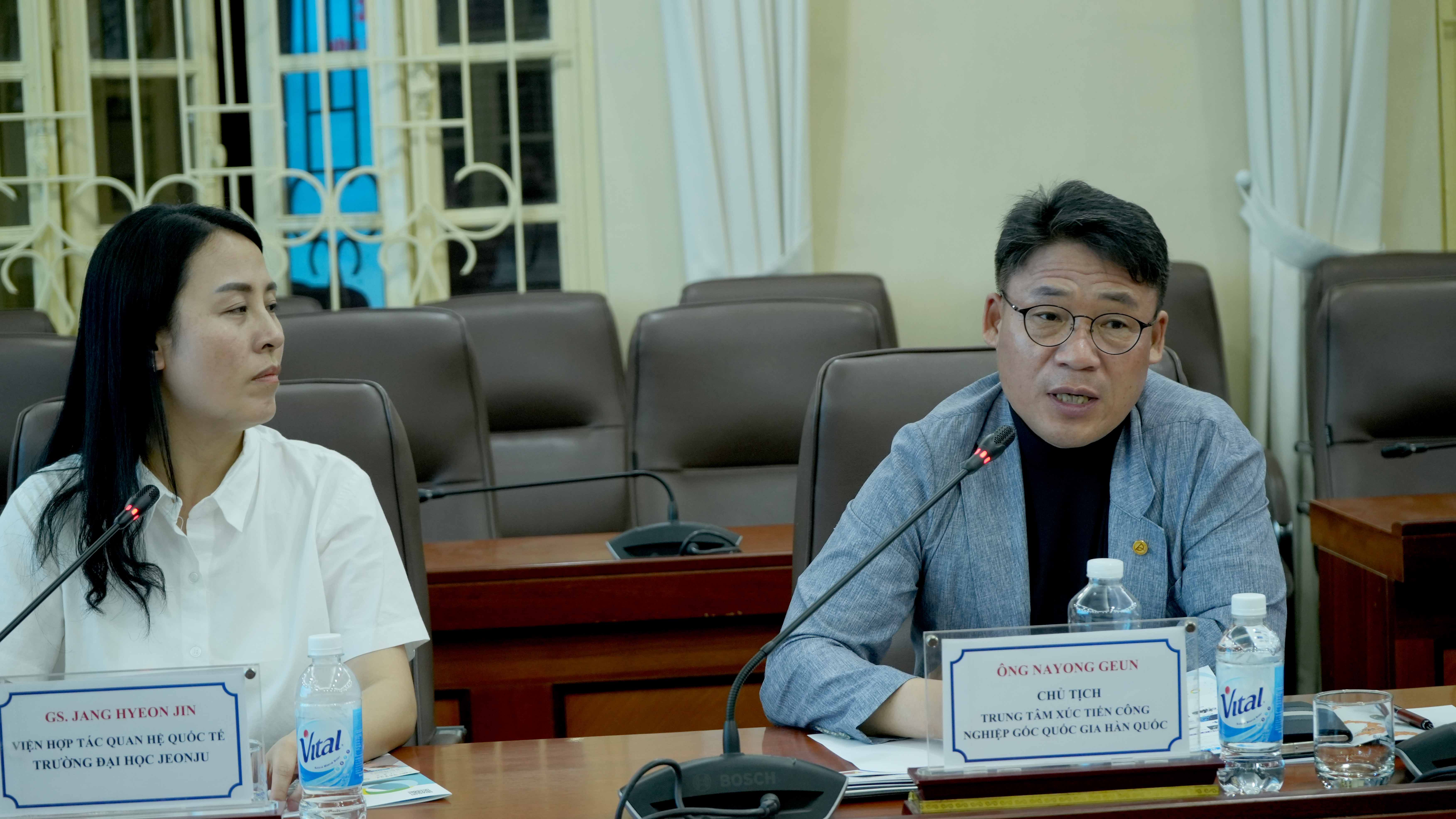 Ông NaYong Geun – Chủ tịch Trung tâm Xúc tiến Công nghiệp Gốc Quốc Gia Hàn Quốc chia sẻ tại buổi làm việc