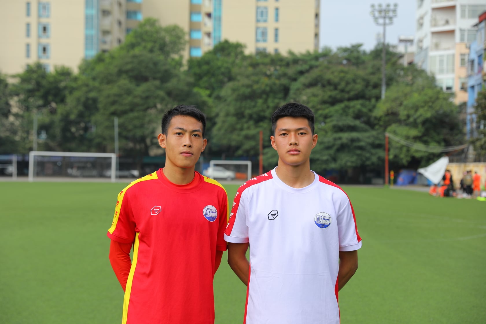 Hai cầu thủ là anh em ruột trong đội tuyển bóng đá của Trường Đại học Thủy lợi, Ngô Quang Tiến lớp 59C1 (áo đỏ) và Ngô Minh Quý 62QLXD3
