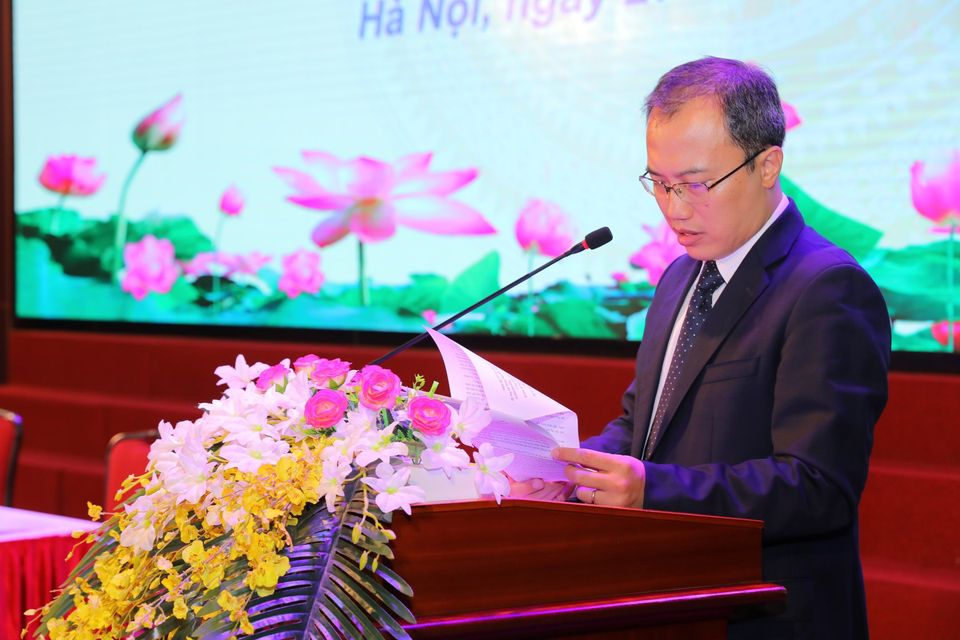 PGS.TS Nguyễn Cảnh Thái, Phó Hiệu trưởng trình bày báo cáo Tổng kết năm học 2019-2020 và phương hướng nhiệm vụ công tác năm học 2020-2021
