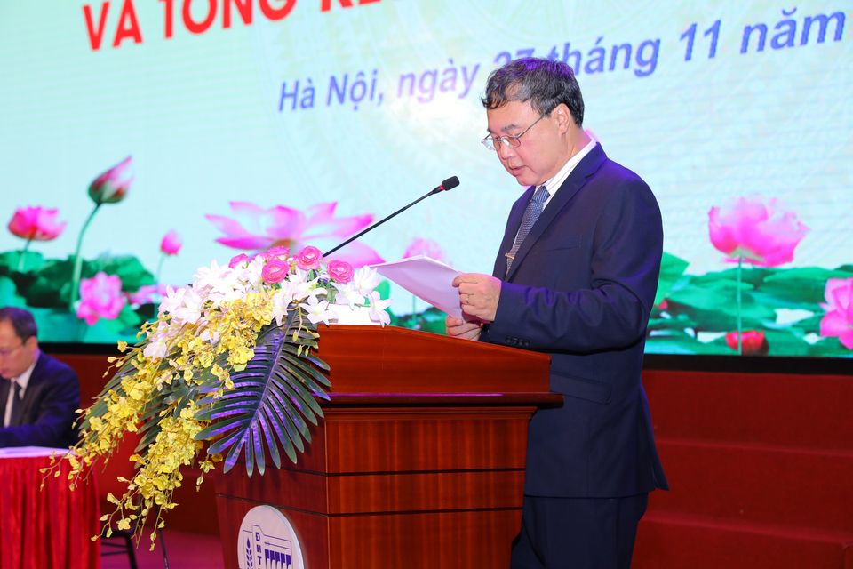 PGS.TS Nguyễn Cảnh Thái, Phó Hiệu trưởng trình bày báo cáo Tổng kết năm học 2019-2020 và phương hướng nhiệm vụ công tác năm học 2020-2021