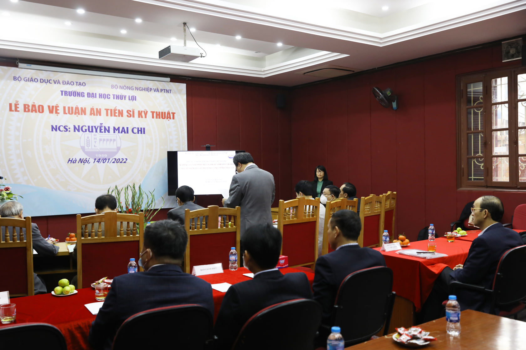 NCS Nguyễn Mai Chi bảo vệ uận án tiến sĩ cấp Trường với Đề tài: Nghiên cứu giải pháp neo xoắn để gia cường ổn định cho cấu kiện bảo vệ mái kênh công trình thủy lợi, Ngành: Địa kỹ thuật xây dựng, Mã số: 9580211. Người hướng dẫn khoa học: GS.TS. Trịnh Minh Thụ; GS.TS. Nguyễn Chiến.