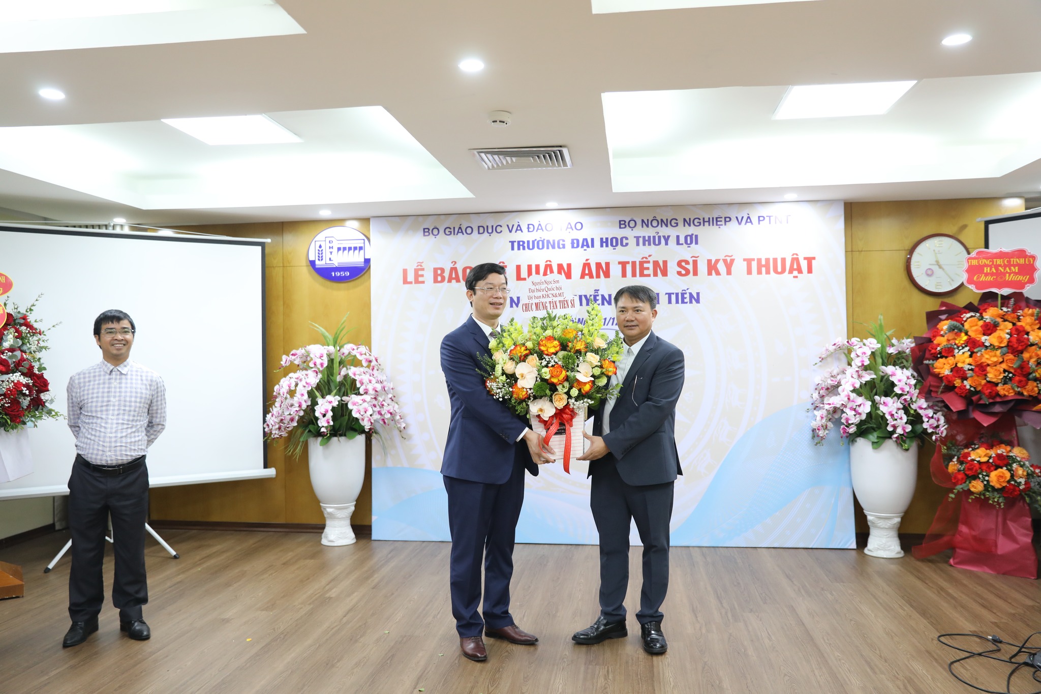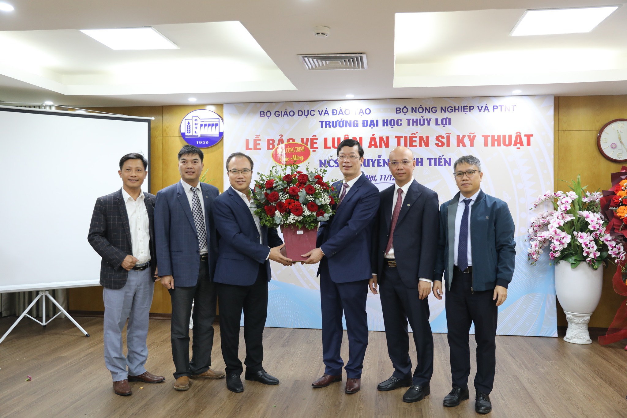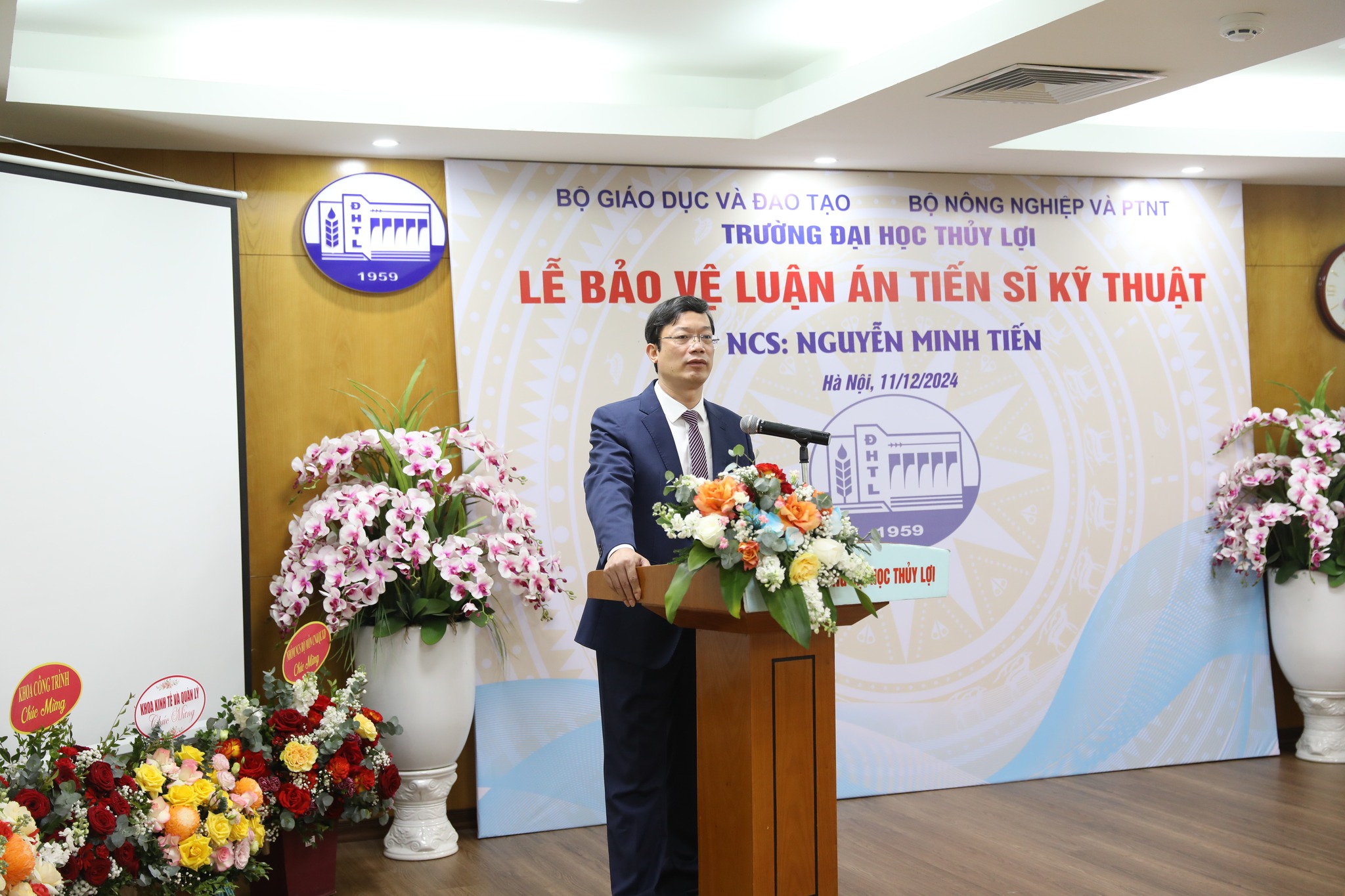 Lễ bảo vệ luận án tiến sĩ của NCS Nguyễn Minh Tiến diễn ra vào lúc 8h30 ngày 11/12/2024 tại Room 5 – K1, Trường Đại học Thủy lợi, Hà Nội. Buổi bảo vệ thu hút sự tham gia của các nhà khoa học, cán bộ, giảng viên và đồng nghiệp, đặc biệt là sự hiện diện của các lãnh đạo Trường Đại học Thủy lợi: PGS.TS. Nguyễn Hữu Huế, Bí thư Đảng ủy, Chủ tịch Hội đồng trường; GS.TS. Trịnh Minh Thụ, Hiệu trưởng; GS.TS. Nguyễn Trung Việt, Phó Hiệu trưởng; PGS.TS. Đỗ Văn Quang, Phó Hiệu trưởng.