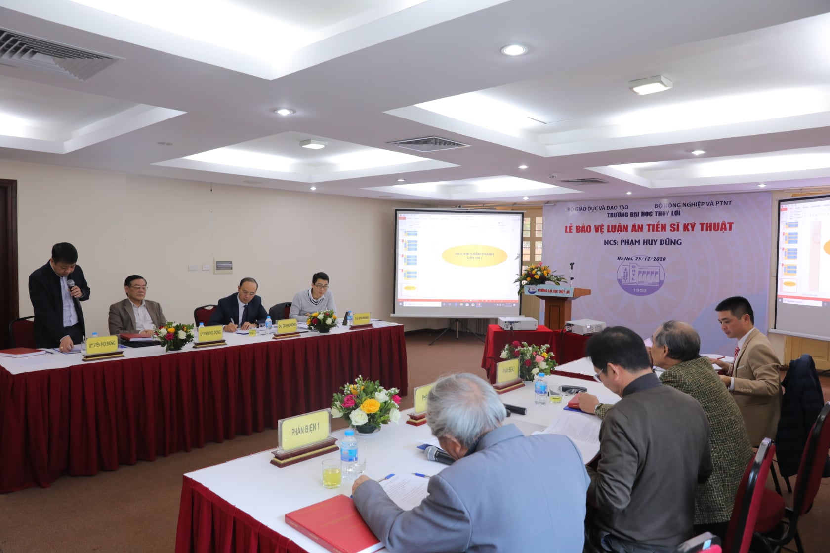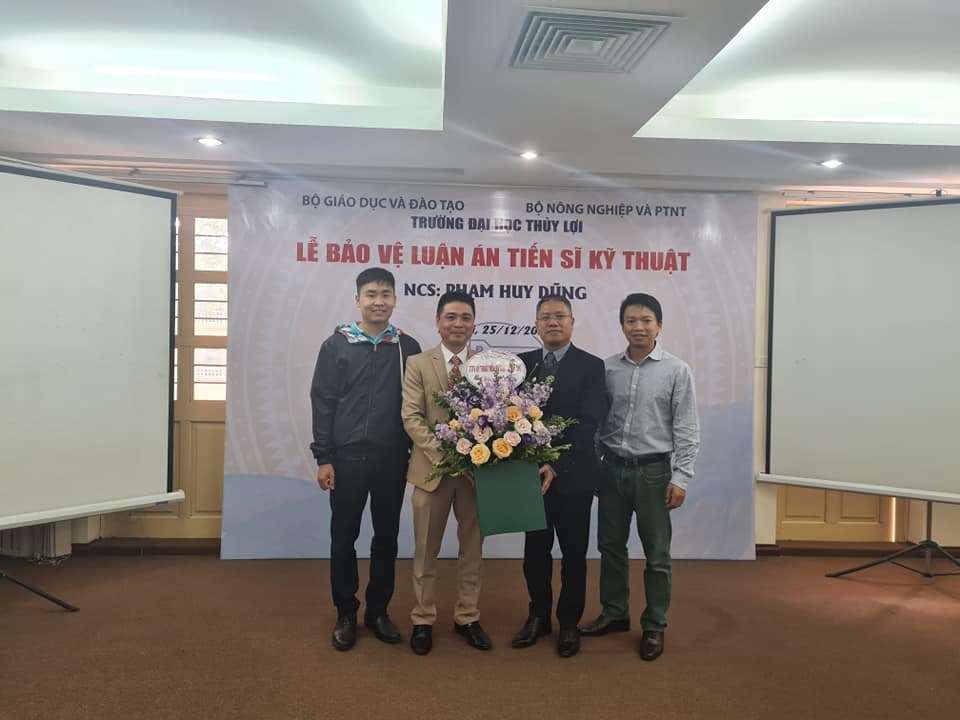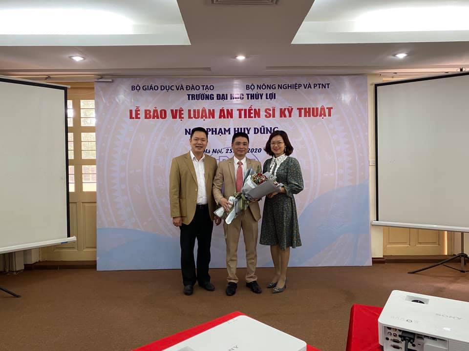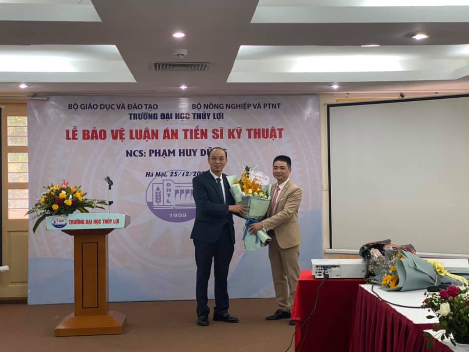 Lãnh đạo Nhà trường và các đơn vị chúc mừng NCS bảo vệ luận án tiến sĩ