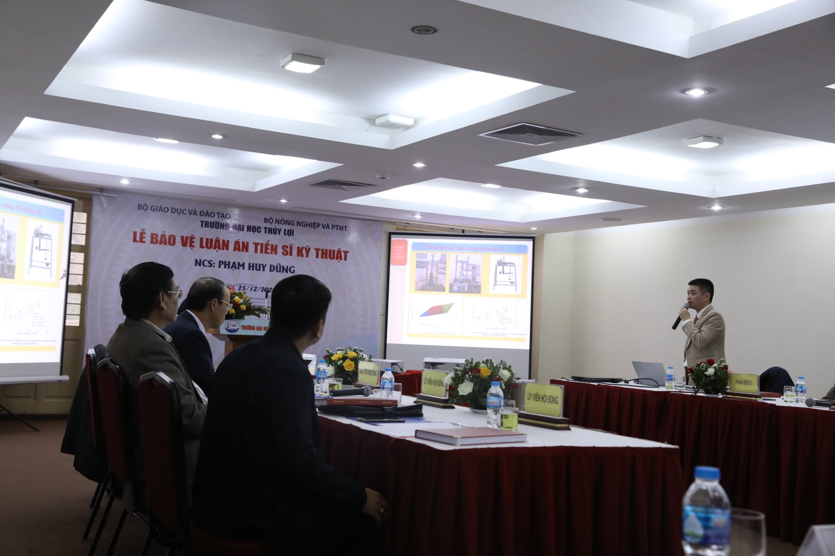 Lãnh đạo Nhà trường và các đơn vị chúc mừng NCS bảo vệ luận án tiến sĩ