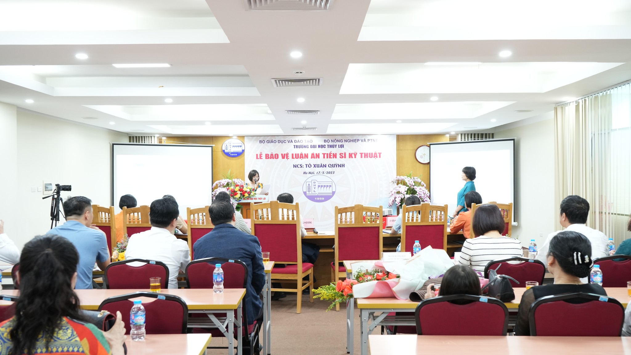 Lãnh đạo Trường Đại học Thủy lợi, PGS.TS Nguyễn Hữu Huế – Bí thư Đảng ủy, Chủ tịch Hội đồng trường dự buổi bảo vệ