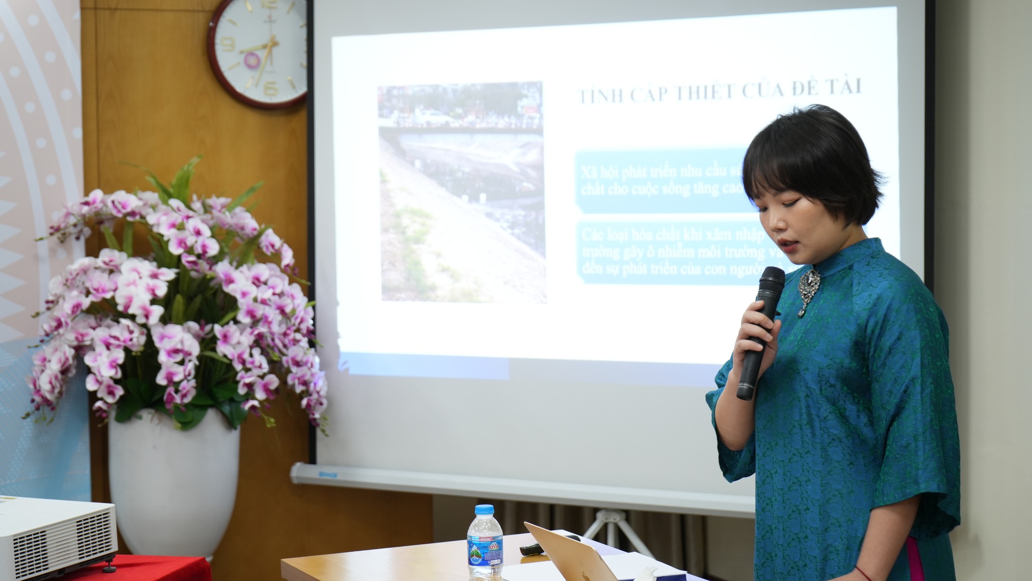 Đề tài: Nghiên cứu, đánh giá mức độ ô nhiễm một số chất hữu cơ độc hại trong nước, trầm tích sông Kim Ngưu và thử nghiệm xử lý PAHS bằng vật liệu trên nền TiO2 do NCS Tô Xuân Quỳnh thực hiện thuộc Ngành: Kỹ thuật môi trường Mã số: 9 52 03 20; Người hướng dẫn khoa học: GS.TS. Vũ Đức Toàn và GS.TS. Nguyễn Thị Huệ.