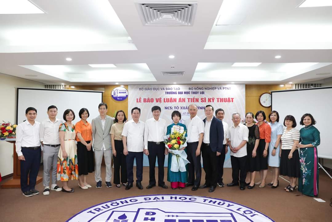 Lãnh đạo Trường Đại học Thủy lợi, PGS.TS Nguyễn Hữu Huế – Bí thư Đảng ủy, Chủ tịch Hội đồng trường dự buổi bảo vệ