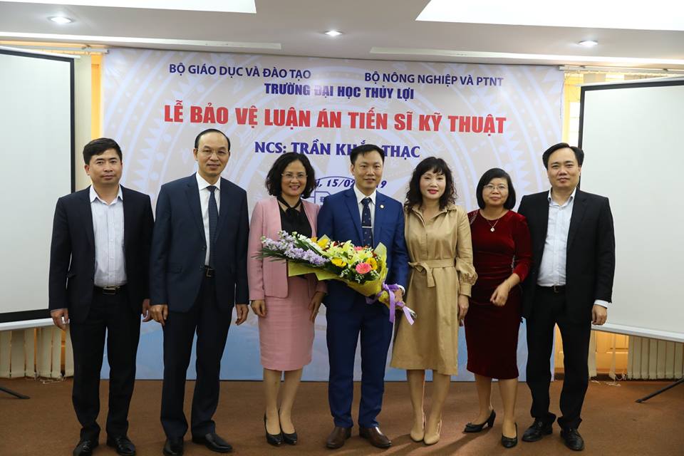 NCS Trần Khắc Thạc bảo vệ luận án tiến sĩ cấp trường với tên đề tài: Nghiên cứu cơ sở khoa học và thực tiễn đề xuất vị trí hợp lý của cửa lấy nước vào sông Đáy đảm bảo yêu cầu cấp nước và tạo dòng chảy thường xuyên cho sông Đáy; Chuyên ngành: Thủy văn học; Mã số: 9440224; Người hướng dẫn khoa học: GS.TS. Phạm Thị Hương Lan;  PGS.TS. Tan Soon Keat (ĐH Công nghệ Nanyang, Singapore) ngày 15/02/2019.