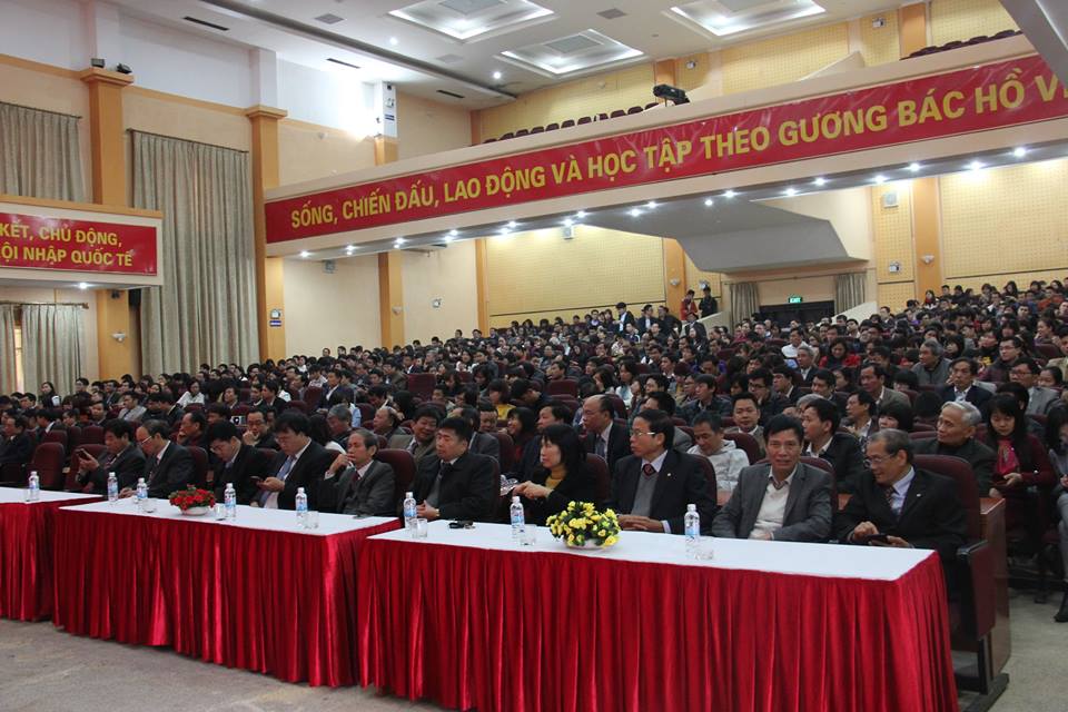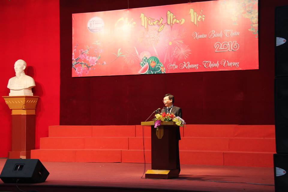 Trong buổi gặp mặt ấm cúng của một năm mới tại Hội trường T45 vào sáng nay 22/2/2016, cán bộ giáo viên nhà trường được GS.TS Nguyễn Quang Kim – Bí thư Đảng ủy, Hiệu trưởng nhà trường thông báo sơ nét về những kết quả rất đáng khích lệ của trường ta trong năm 2015 vừa qua với nhiều nét nổi bật được ghi nhận như công tác Đào tạo, tuyển sinh Đại học chính quy, xây dựng và cải thiện cơ sở vât chất, công tác nghiên cứu khoa học, hợp tác quốc tế …Ngoài ra GS Kim còn thông báo những tín hiệu vui trong những ngày đầu xuân mới 2016 đến với nhà trường như việc được UBND tỉnh Bình Dương đồng ý cấp 5ha đất tại huyện Bến Cát phục vụ cho việc mở rộng trường cũng như chuyển đổi Cơ sở 2 thành phân hiệu phía nam theo đề án nhà trường đang trình các Bộ ngành, UBND tỉnh Hưng Yên đồng ý cấp hơn 20ha bổ sung giai đoạn tiếp theo cho dự án mở rộng trường tại khu Đại học Phố Hiến hay như Bộ NN&PTNT đồng ý giao cho Cơ sở 2 khai thác sử dụng khuôn viên của Ban Quản lý Dự án Thủy Lợi 9 tại số 2 Trường Sa …với những thông tin hữu ý hy vọng cho một năm mới sẽ nhiều thắng lợi mới.