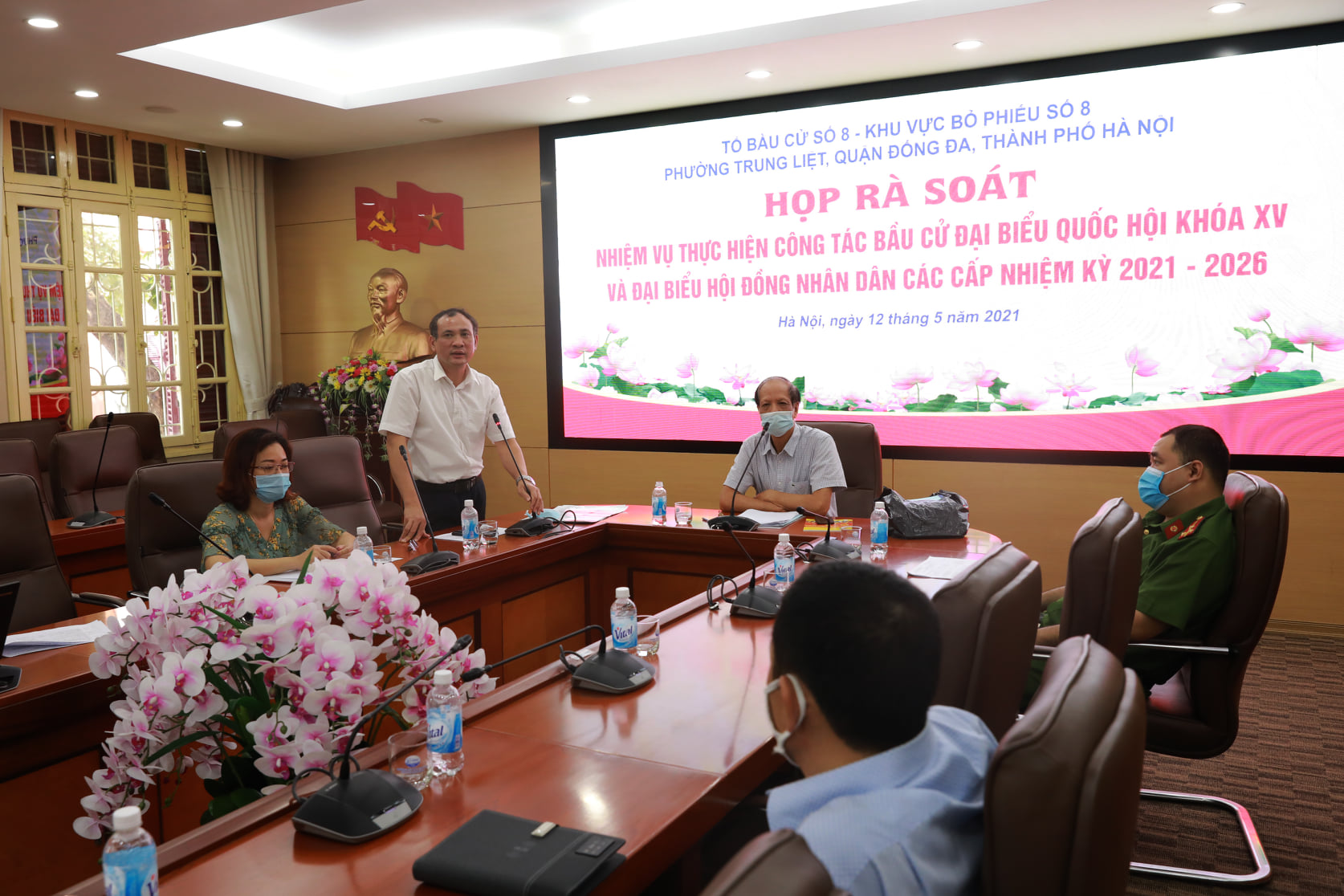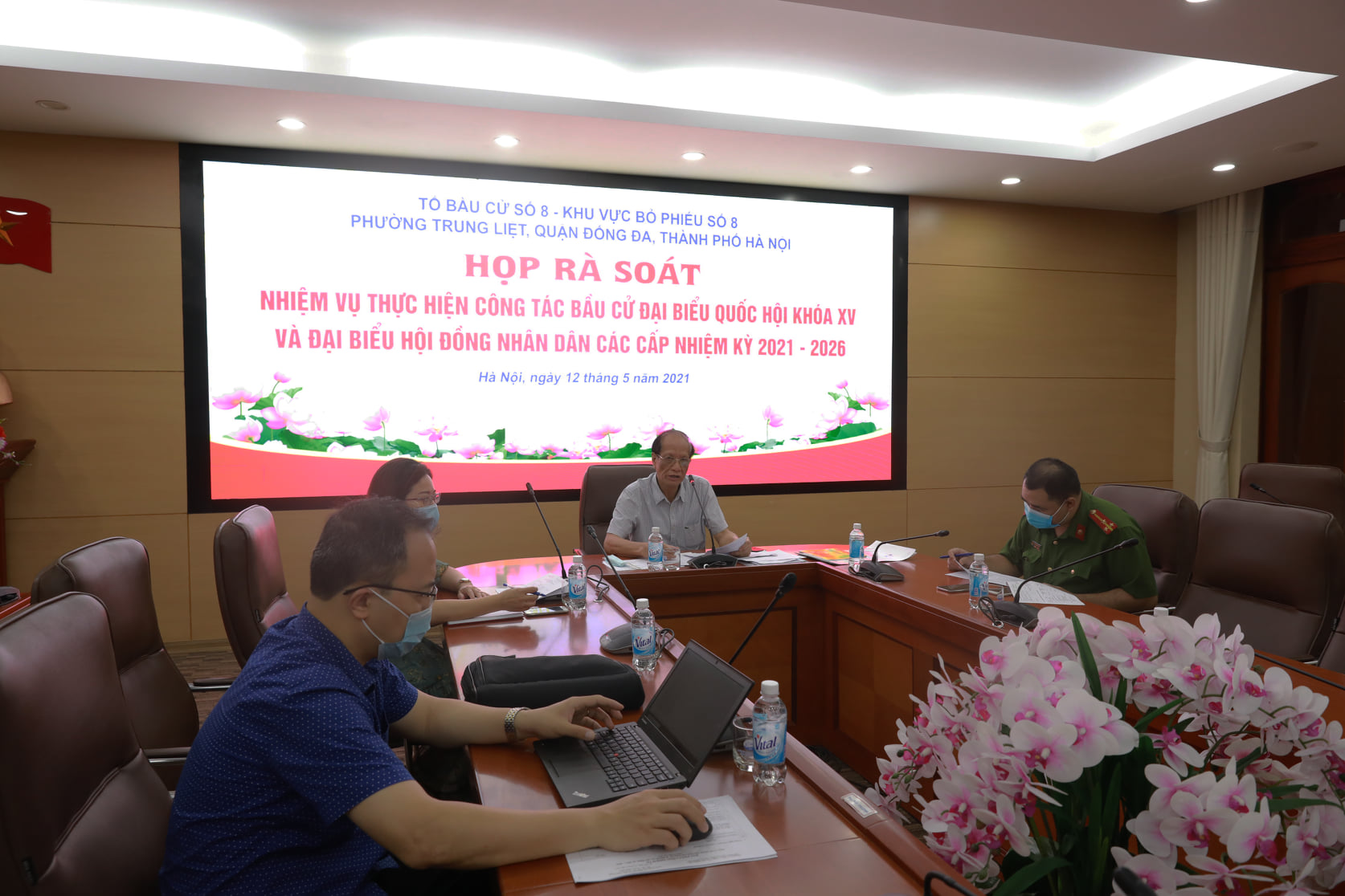 Ban chỉ đạo điểm bỏ phiếu số 8, khu vực số 8 Phường Trung Liệt đã họp rà soát tất cả các công tác chuẩn bị