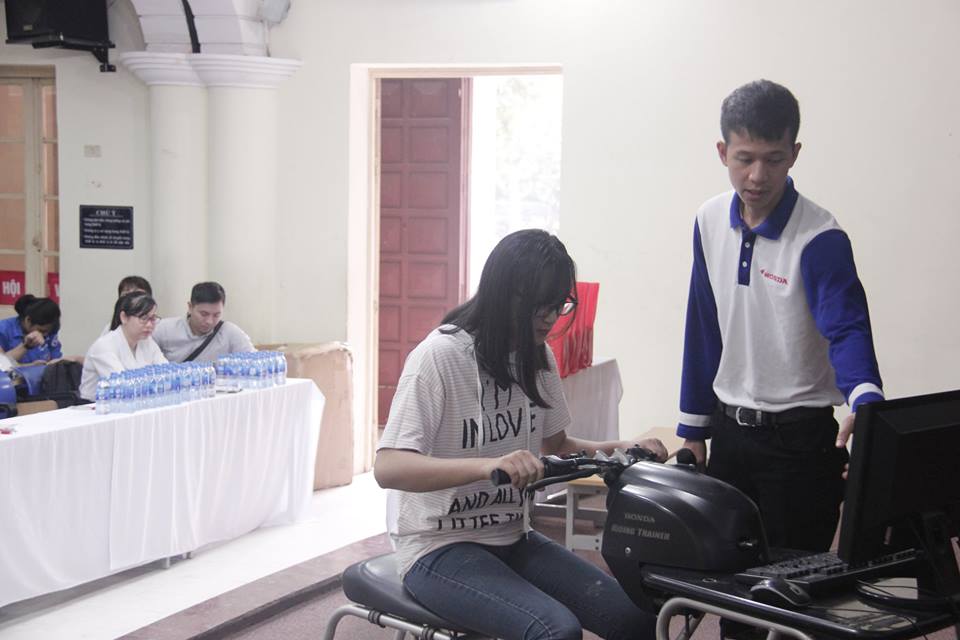 Trong ngày hội, chương trình hướng dẫn kĩ thuật lái xe an toàn, thực hành lái xe bằng máy tập giả lập RT diễn ra tại Hội trường T35 được nhiều bạn sinh viên quan tâm.Tại đây, các bạn sinh viên đã được trang bị các kiến thức cơ bản về giao thông đường bộ và các kĩ năng lái xe an toàn. Bên cạnh đó, sinh viên còn được thực hành lái xe bằng lái tập trên máy RT giúp sinh viên xử lý kịp thời các tình huống thường xảy ra khi tham gia giao thông. Cuối chương trình Honda Việt Nam đã trao hơn 100 phần quà có giá trị cho các bạn sinh viên khi tham gia vào minigame xử lý các tình huống về Luật an toàn giao thông đường bộ, kĩ thuật lái xe an toàn, tiết kiệm nhiên liệu.