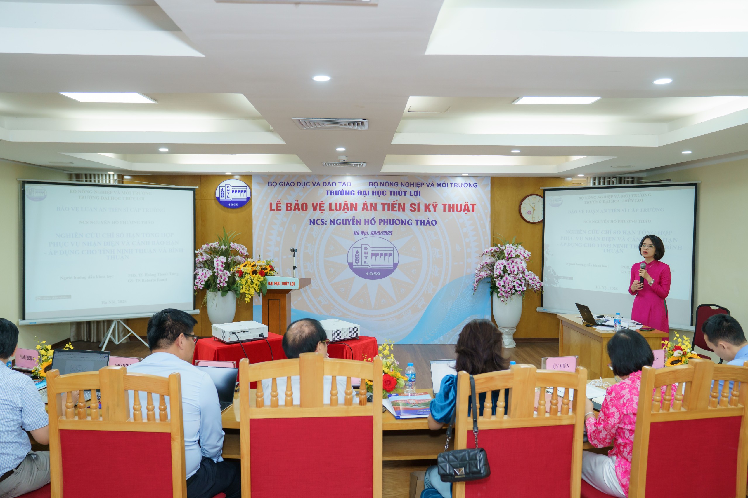 Đánh giá luận án của NCS, GS.TS Vũ Minh Cát – Chủ tịch Hội đồng nhấn mạnh luận án tiến sĩ của NCS có chất lượng và đã có những cập nhật về GIS trong phòng chống thiên tai đặc biệt kết hợp với trí tuệ nhân tạo phục vụ xây dựng các chỉ số cũng như cảnh báo hạn ở khu vực Ninh Thuận và Bình Thuận.