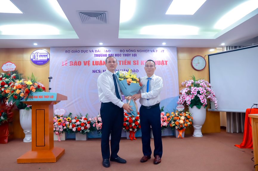 GS.TS Nguyễn Trung Việt – Phó Hiệu trưởng chúc mừng NCS bảo vệ thành công luận án tiến sĩ cấp Trường