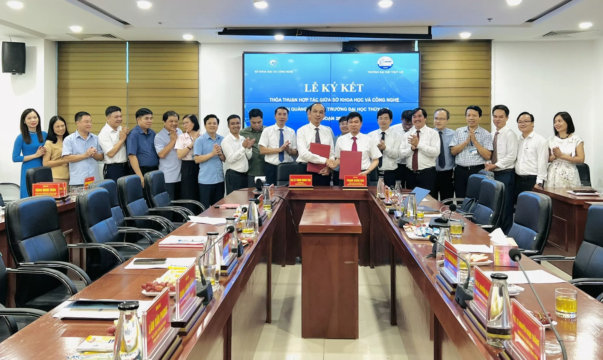 Toàn cảnh lễ ký kết Biên bản ghi nhớ hợp tác Về phía Sở Khoa học và Công nghệ tỉnh Quảng Ninh có Ông Phạm Xuân Đài, Tỉnh uỷ viên, Giám đốc Sở, các đồng chí thuộc Ban giám đốc, Lãnh đạo các Phòng, Trung tâm và đông đảo cán bộ liên quan thuộc Sở Khoa học và Công nghệ tỉnh Quảng Ninh. Ông Phạm Xuân Đài – Tỉnh uỷ viên, Giám đốc Sở Khoa học và Công nghệ phát biểu chào mừng Về phía Trường Đại học Thuỷ lợi có GS.TS Trịnh Minh Thụ – Hiệu trưởng Nhà Trường;...