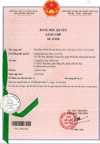 Vừa qua nhóm giảng viên của Trường Đại học Thủy lợi đã chính thức được Cục Sở hữu trí tuệ – Bộ Khoa học và Công nghệ cấp bằng Độc quyền sáng chế cho công trình nghiên cứu “Phương pháp đo hệ số ma sát cối quay cửa van cung”.  ​ Cửa van là một bộ phận kết cấu quan trọng liên quan đến an toàn và hiệu quả của công trình Thủy lợi. Các công trình ngăn sông lớn thường có mức độ yêu cầu rất cao về hệ thống cửa van như trong quá trình khai thác, vận...
