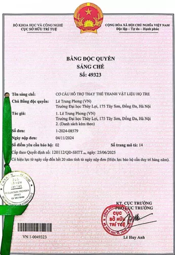 Giảng viên Trường Đại học Thủy lợi nhận Bằng Độc quyền sáng chế