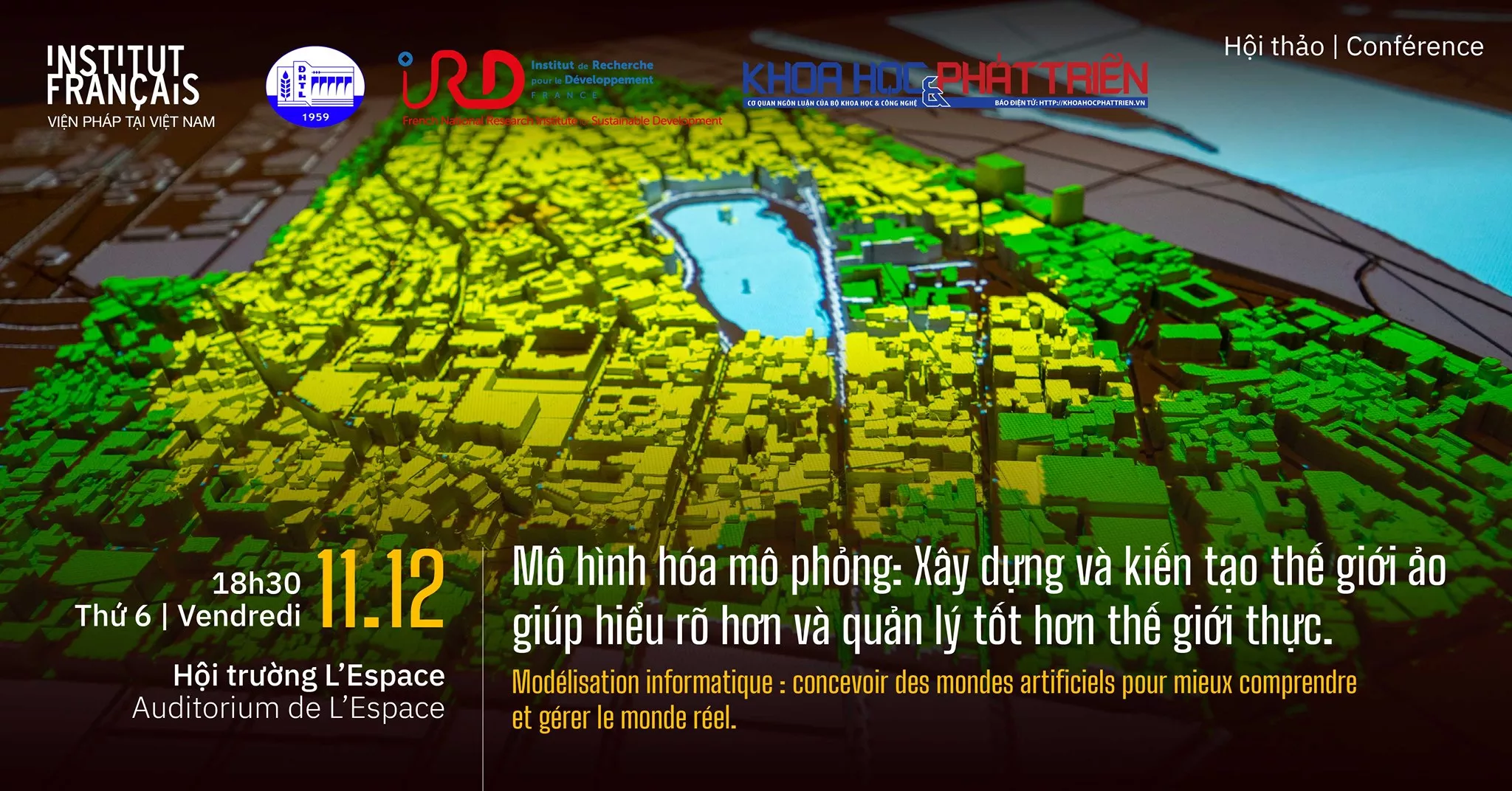 MÔ HÌNH HÓA MÔ PHỎNG: XÂY DỰNG VÀ KIẾN TẠO THẾ GIỚI ẢO GIÚP HIỂU RÕ HƠN VÀ QUẢN LÝ TỐT HƠN THẾ GIỚI THỰC (I MODÉLISATION INFORMATIQUE: CONCEVOIR DES MONDES ARTIFICIELS POUR MIEUX COMPRENDRE ET GÉRER LE MONDE RÉEL) Thứ Sáu | Vendredi – 11.12.2020 – 18h30 Hội trường L’Espace | Auditorium de L’Espace Diễn giả | Intervenants – Alexis Drogoul, Viện Nghiên cứu vì sự Phát triển, Pháp | Alexis Drogoul, IRD – Patrick Taillandier, Viện Nghiên cứu vì sự Phát triển, Pháp | Patrick Taillandier, IRD – Nguyễn Ngọc Doanh, Trường Đại học Thủy Lợi | Nguyen...
