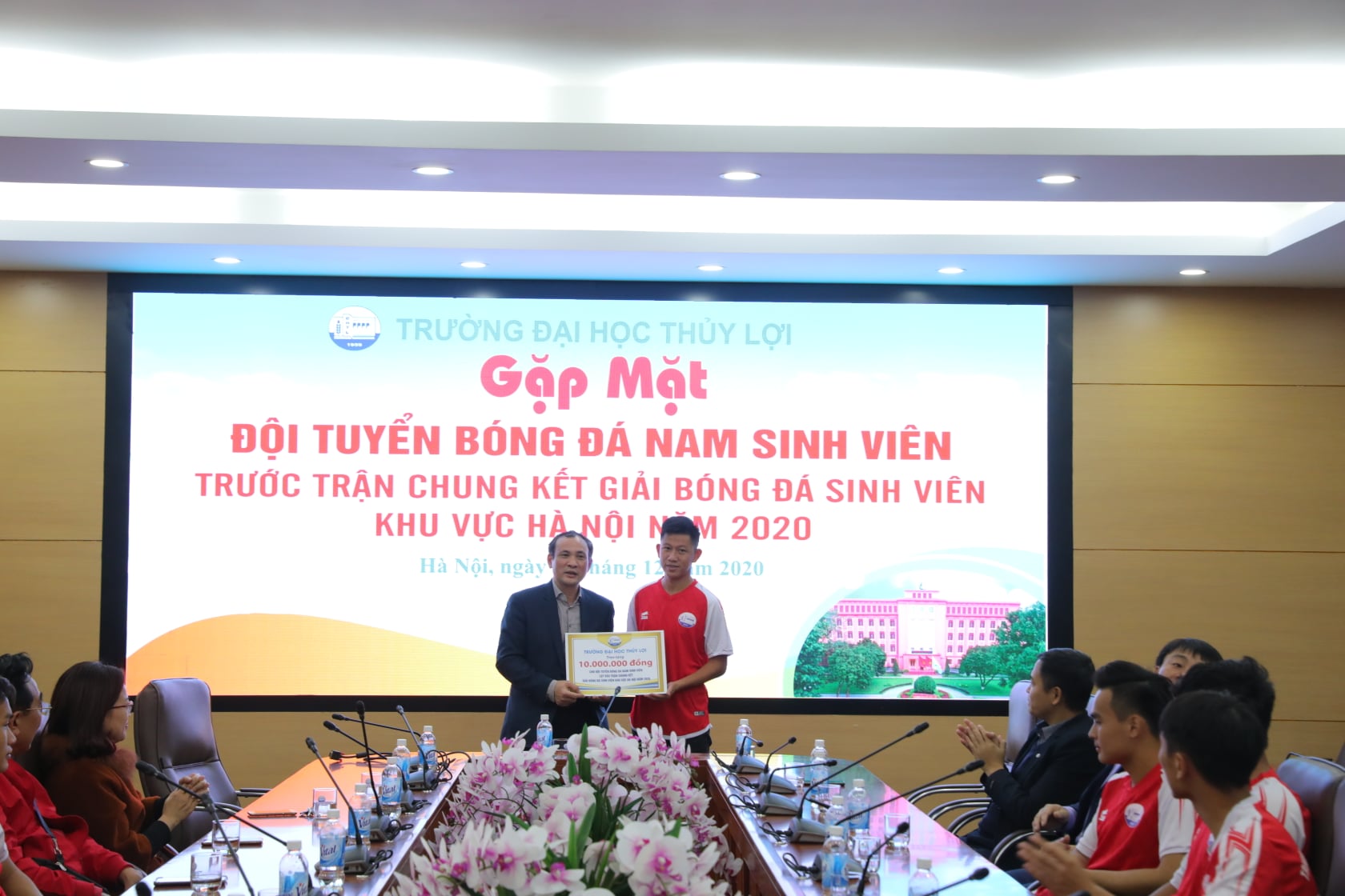 Để động viên tinh thần đội tuyển, Nhà trường đã thưởng nóng cho đội 10 triệu đồng trước khi đội tuyển bước vào trận đấu quyết định đến chức vô địch. GS.TS Nguyễn Trung Việt nhấn mạnh “Trường Đại học Thủy lợi luôn tự hào có phong trào văn hóa, văn nghệ mạnh, đặc biệt là bóng đá. Các cầu thủ đội bóng là sứ giả truyền thông mang hình ảnh Trường Đại học Thủy lợi lan tỏa trong xã hội…”