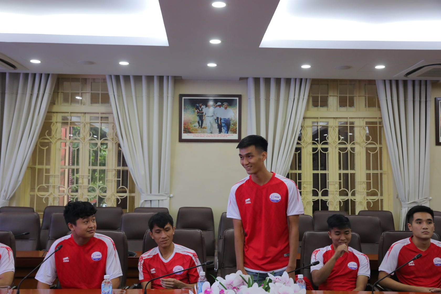 Trong buổi gặp mặt, HLV Vũ Văn Trung còn chia sẻ “Đội tuyển nhận được rất nhiều sự quan tâm của lãnh đạo Nhà trường, các phòng ban, các nhà tài trợ để tiếp thêm sức mạnh cho đội tuyển mà hiếm đội bóng đá sinh viên nào tại Việt Nam có được.”
