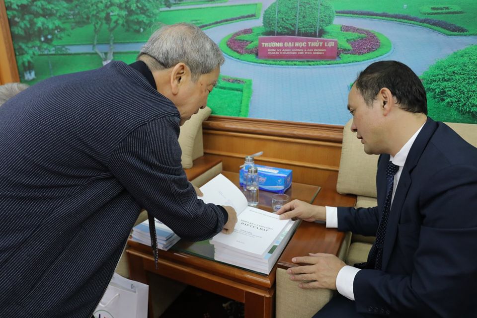 Nhân dịp này, đại diện Khóa 1 tặng Nhà trường bộ sách về chuyên ngành Thủy lợi giúp ích cho những thế hệ sau tra cứu cũng như làm tư liệu cho Thư viện Nhà trường.